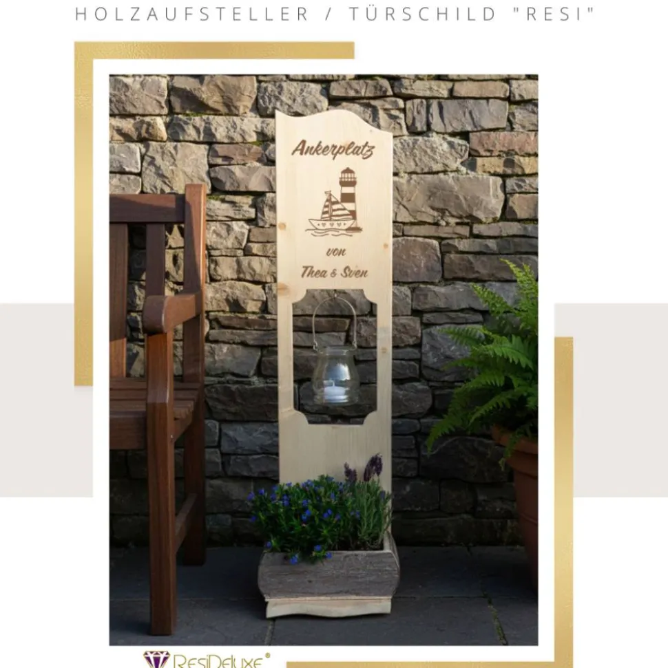 Holzaufsteller „Boot & Leuchtturm“ Türschild Holzschild Hochzeitsgeschenk Hochzeit Perso