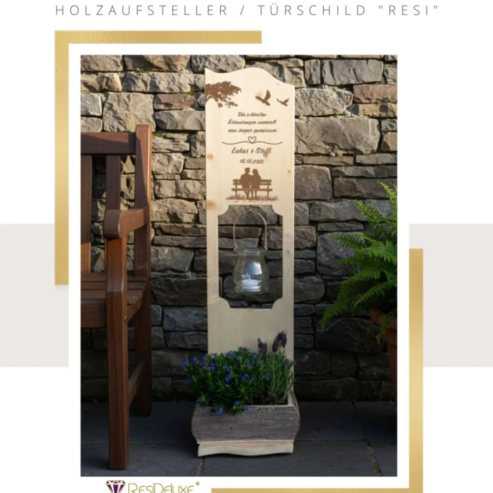 Egal ob zur Hochzeit, zur Verlobung, zum Mutter- oder Vatertag, zum Einzug, Jubiläum oder Geburtstag – Ihre Personalisierungswünsche machen unsere Holzaufsteller RESI zum passenden Geschenk für wirklich jeden Anlass.