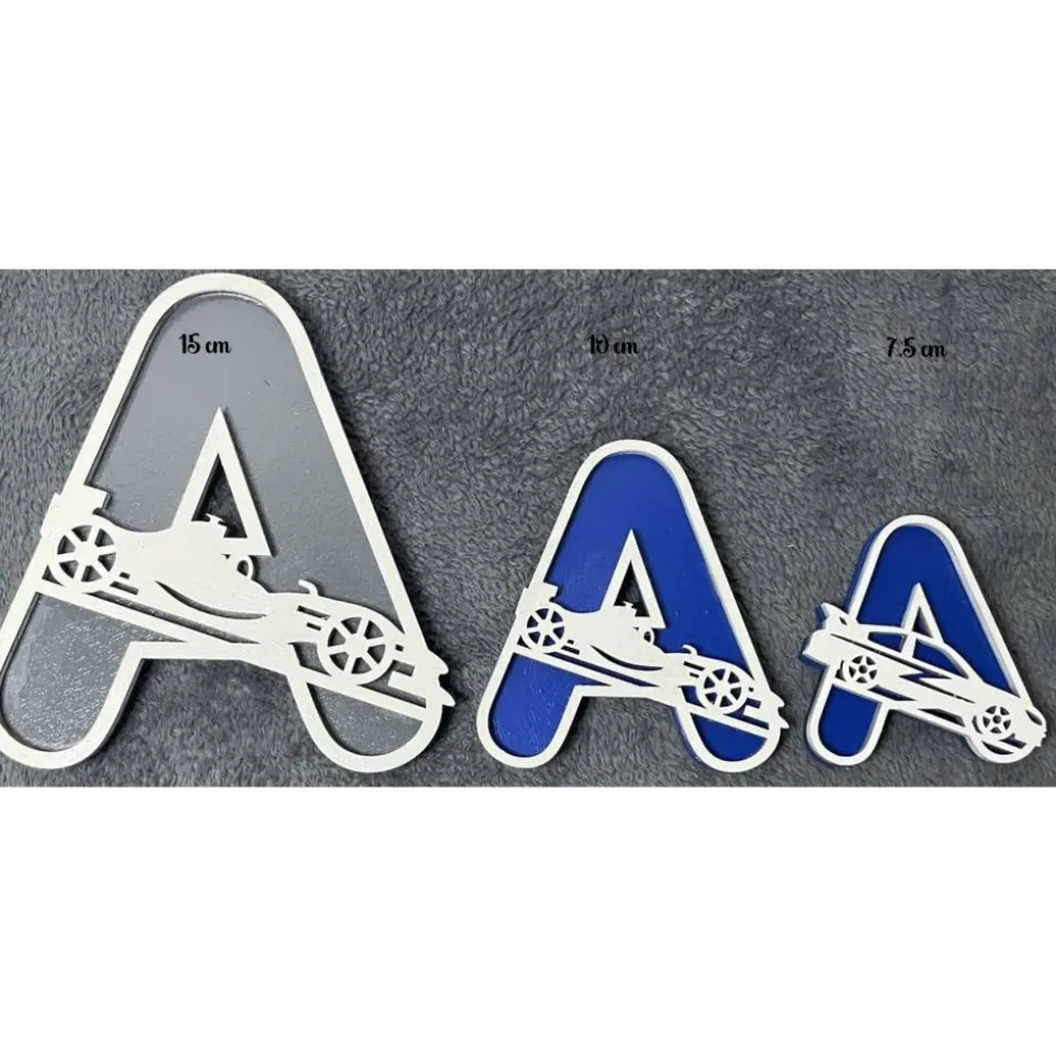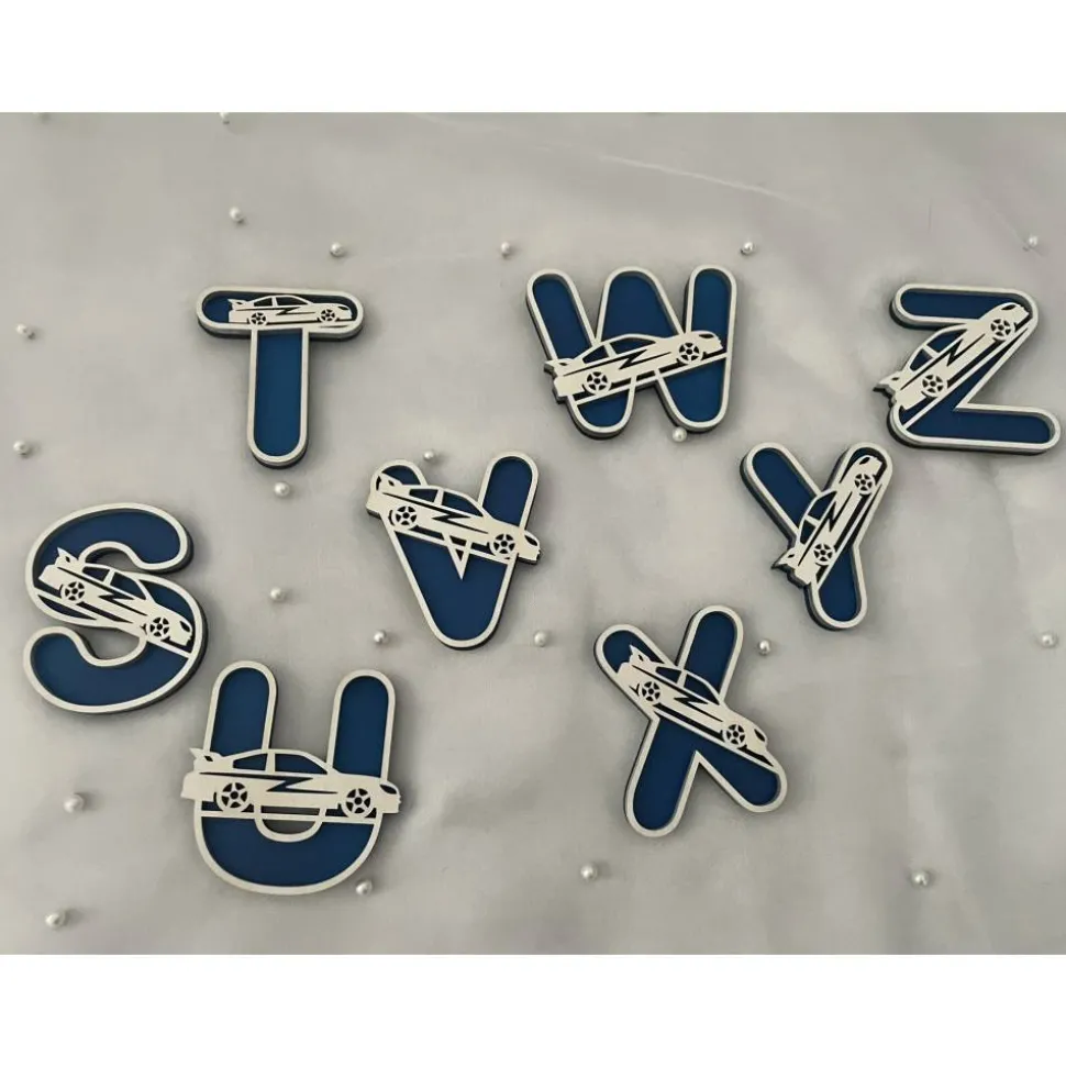 Handgefertigte Personalisierte Holzbuchstaben mit Rennwagen-Design