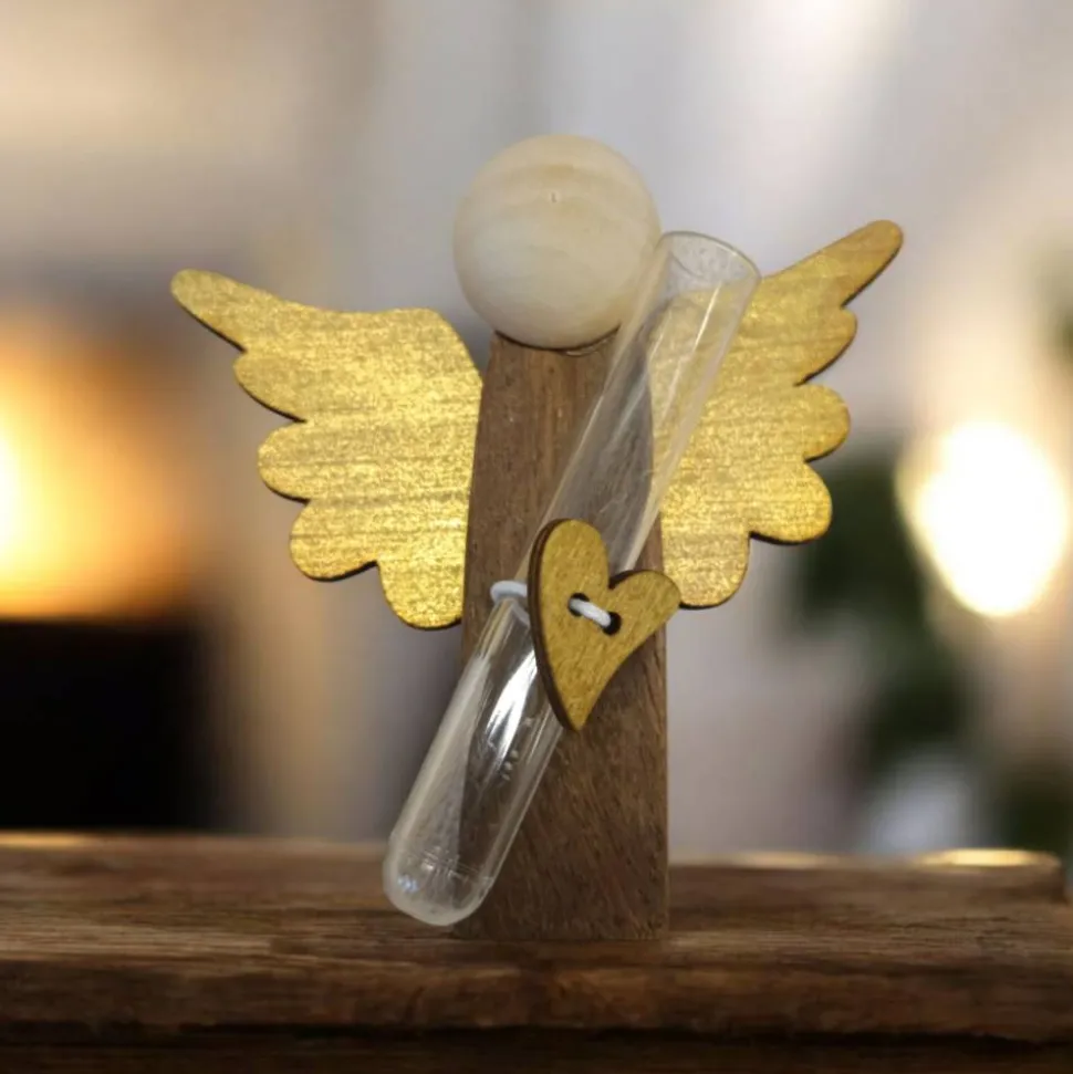 Ob als Glücksbringer, Schutzengel oder einfach als liebevolle Geste – diese kleinen Holzengel finden überall einen Platz, an dem sie Freude schenken dürfen.