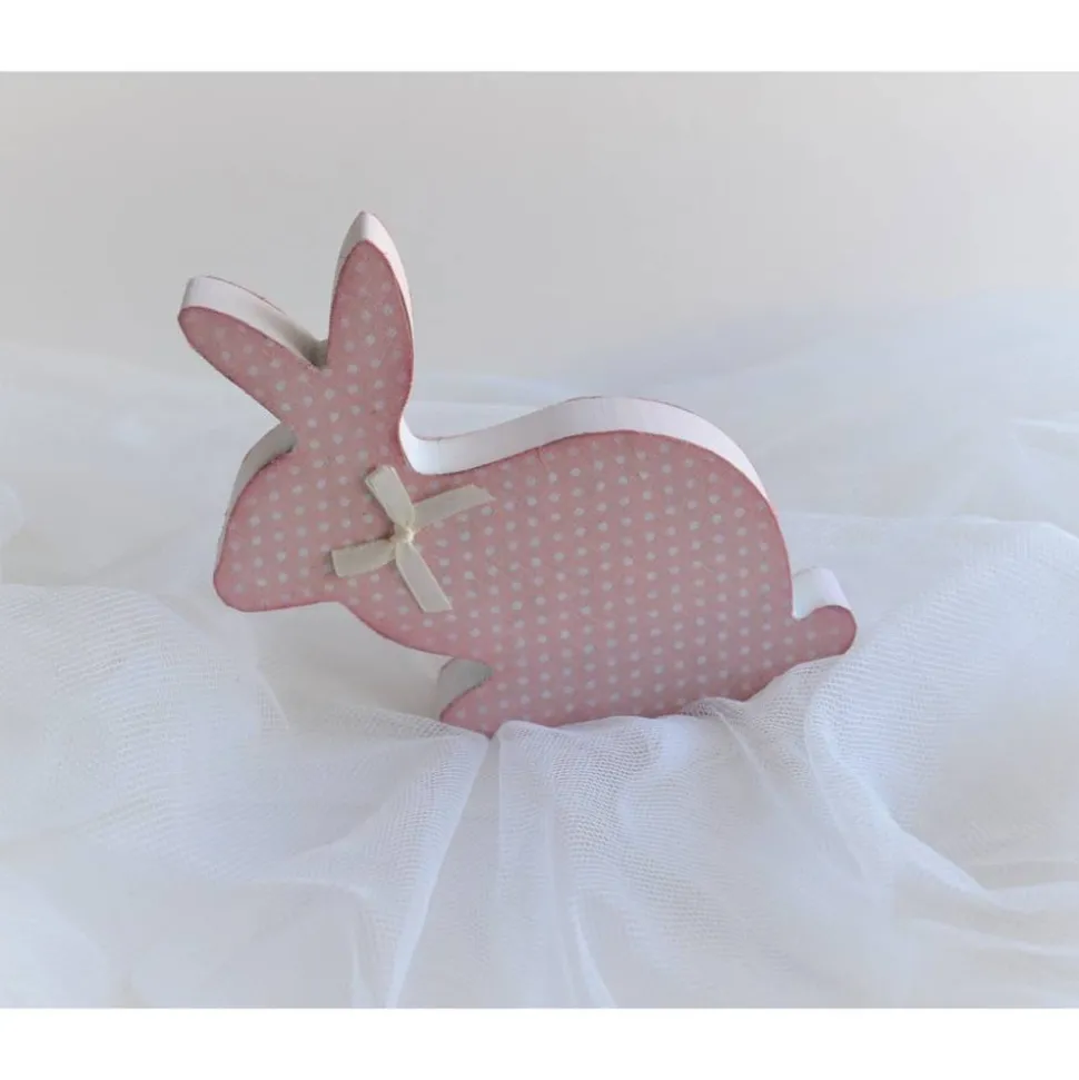 Holzhase sitzend rosa mit weißen Punkten