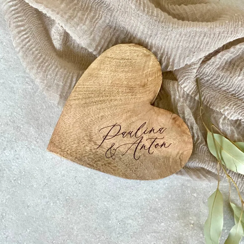 Holzherz personalisiert mit Namen | Format 15x15cm, 2cm dick | Mangoholz