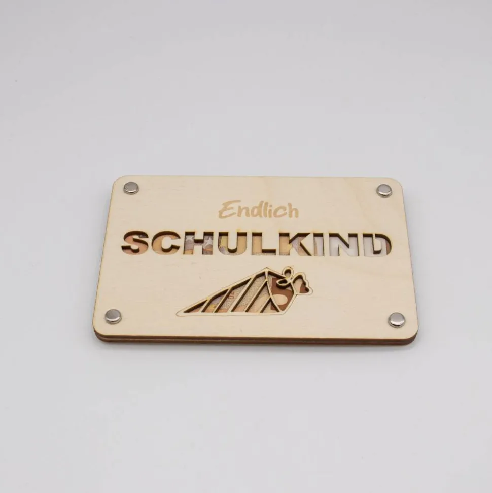 Mit der „Schulkind“ Geldgeschenk-Karte aus Birkenholz überreichen Sie nicht nur ein Geschenk, sondern auch eine bleibende Erinnerung.