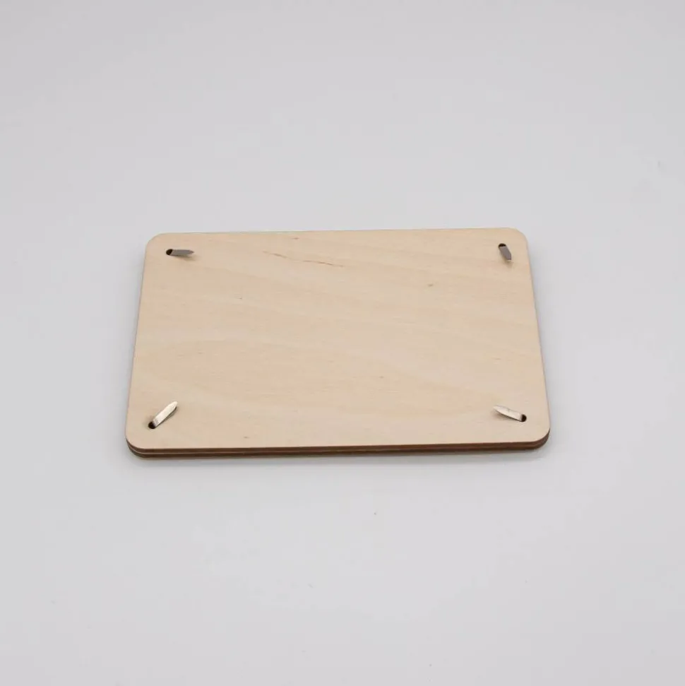 Funktionsweise: Die Karte besteht aus zwei sorgfältig zugeschnittenen Holzplatten, die jeweils 3mm dick sind. Die Platten sind mit präzisen Löchern versehen, durch die kleine Klammern gesteckt werden können, um die Platten zusammenzuhalten. Zwischen diesen beiden Holzplatten wird das Geld platziert. Durch die kunstvoll ausgelaserten Stellen des „SCHULKIND“-Motivs ist das Geld sichtbar und wird so Teil des Gesamtdesigns.