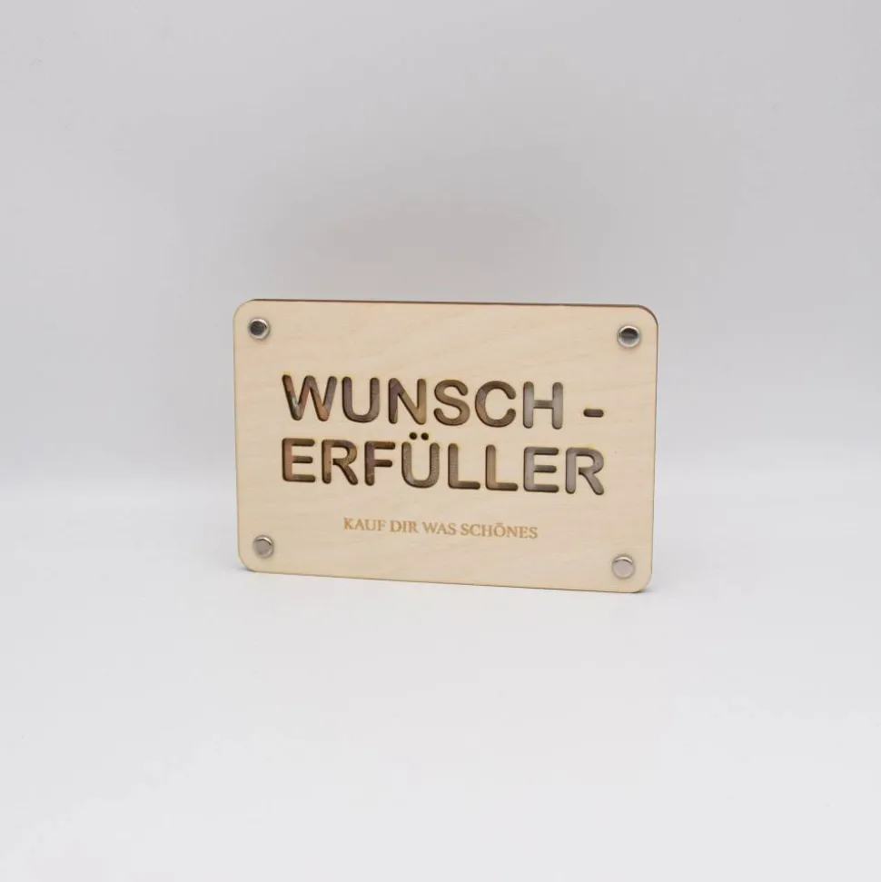 Mit der „Wunscherfüller“ Geldgeschenk-Karte aus Birkenholz überreichen Sie nicht nur ein Geschenk, sondern auch eine bleibende Erinnerung.