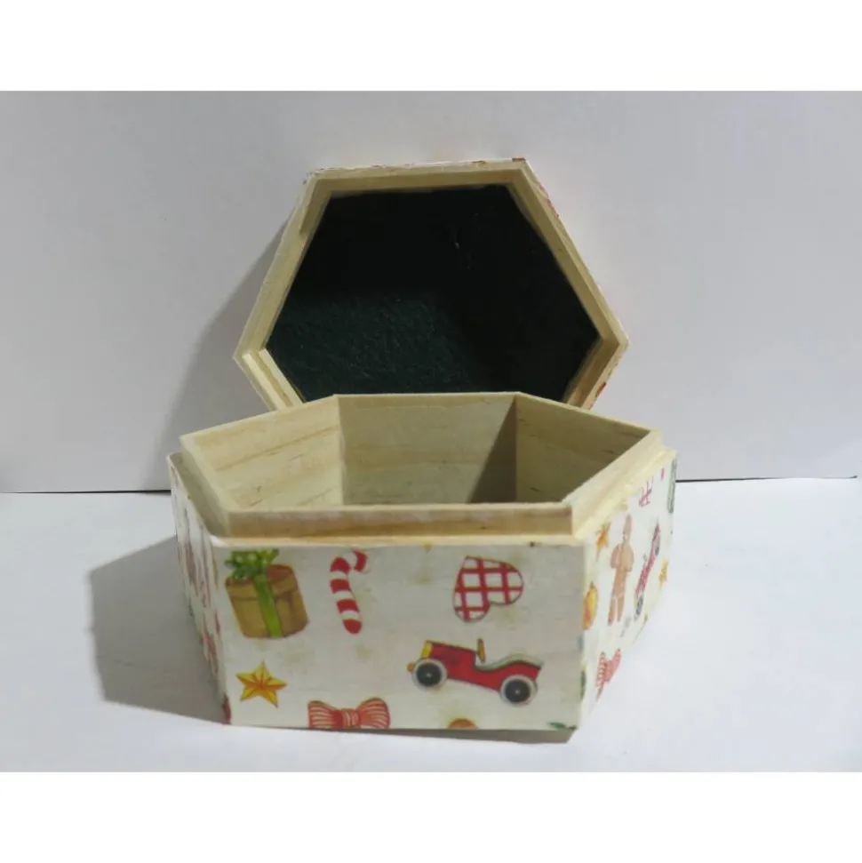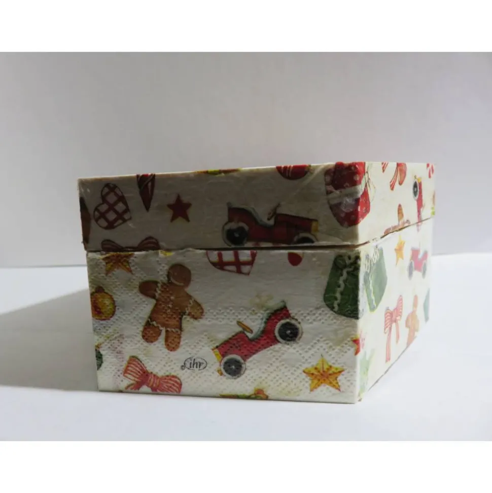 Bei dieser Holzbox verwendete ich die Motivseite einer weihnachtlichen Serviette, grünen Filz für die Innenausstattung und Serviettenkleber.