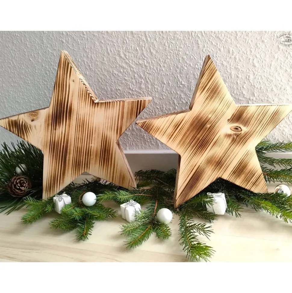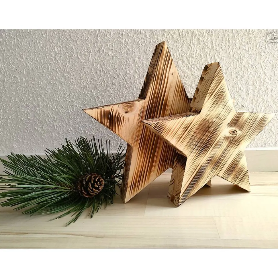 Diese Holzsterne bringen ein Stückrustikale Gemütlichkeit in Ihr Zuhause. Jeder Holzstern ist aufgrund seiner Maserung und der Flammtechnik ein Unikat.