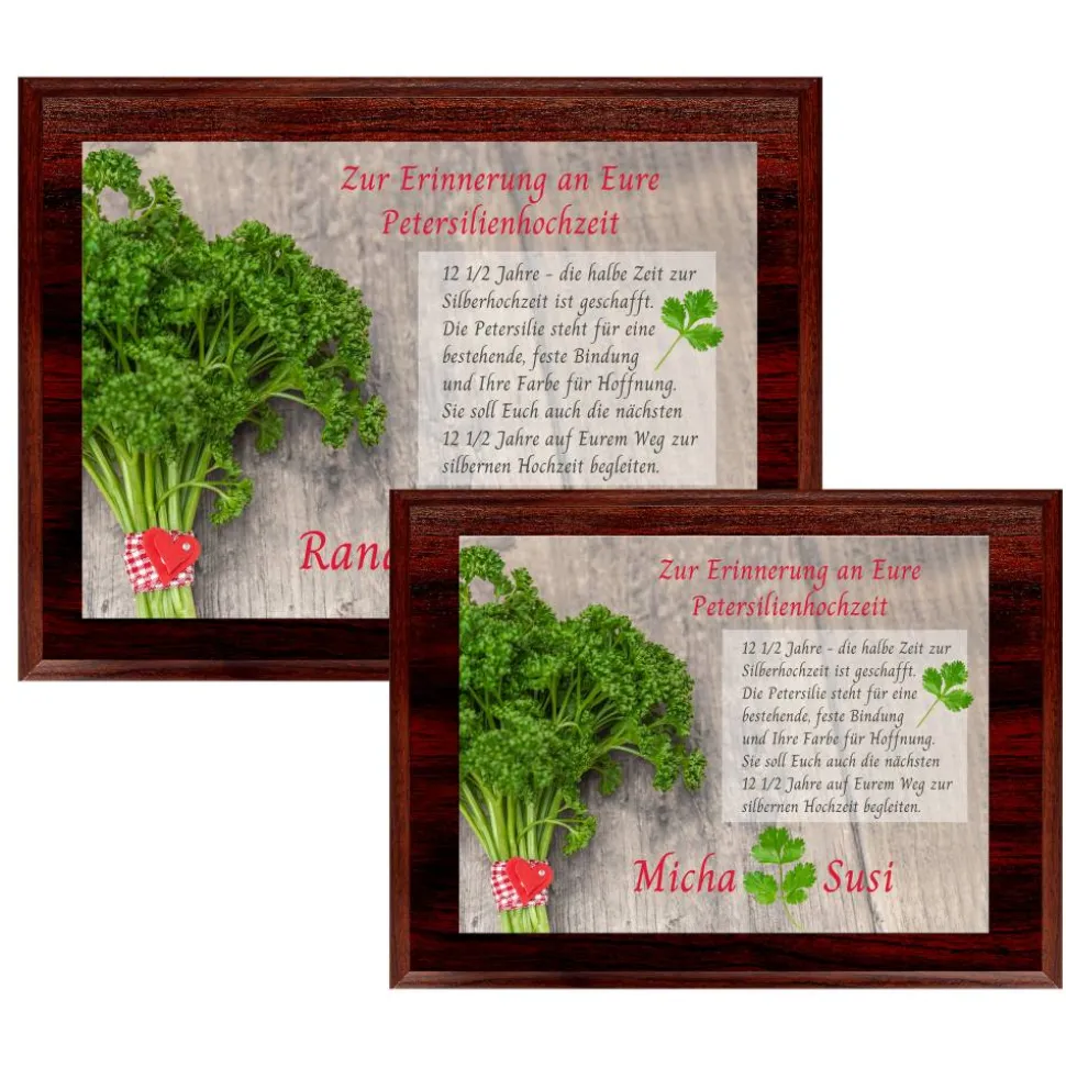 12 1/2 Jahre – die halbe Zeit zur Silberhochzeit ist geschafft. Die Petersilie steht für eine bestehende, feste Bindung und Ihre Farbe für Hoffnung. Sie soll Euch auch die nächsten 12 1/2 Jahre auf Eurem Weg zur silbernen Hochzeit begleiten.