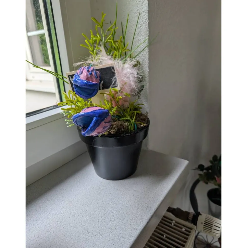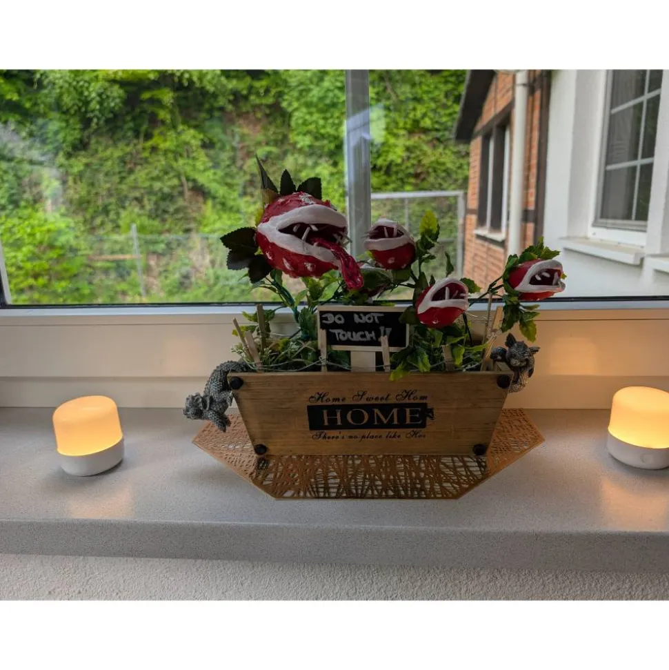 Farbgestaltung: Die Pflanzenköpfe, Zungen und Details fertige ich in Ihren Wunschfarben an (z. B. klassisches Blutrot, giftiges Lila oder schimmerndes Schwarz).