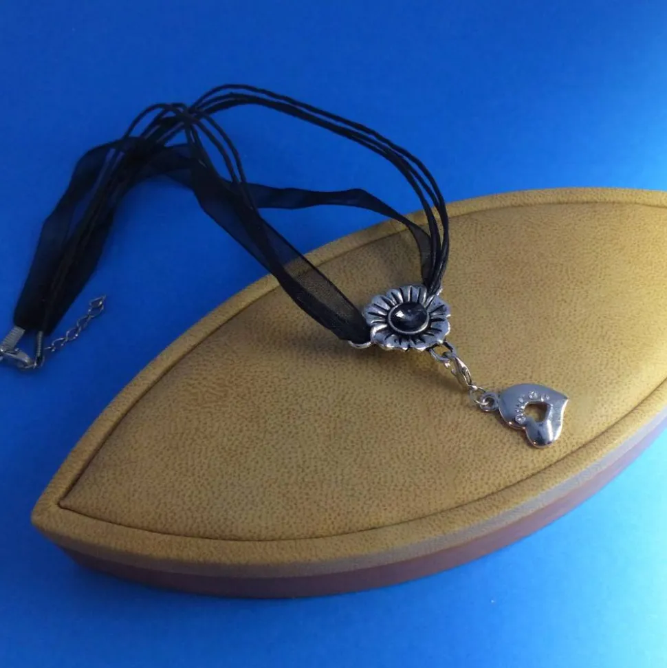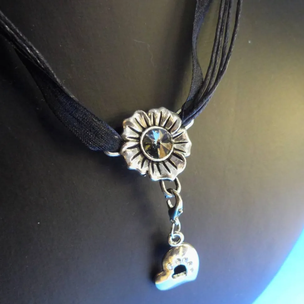 Organzaband schwarz mit Karbiner und Verlängerungskettchen