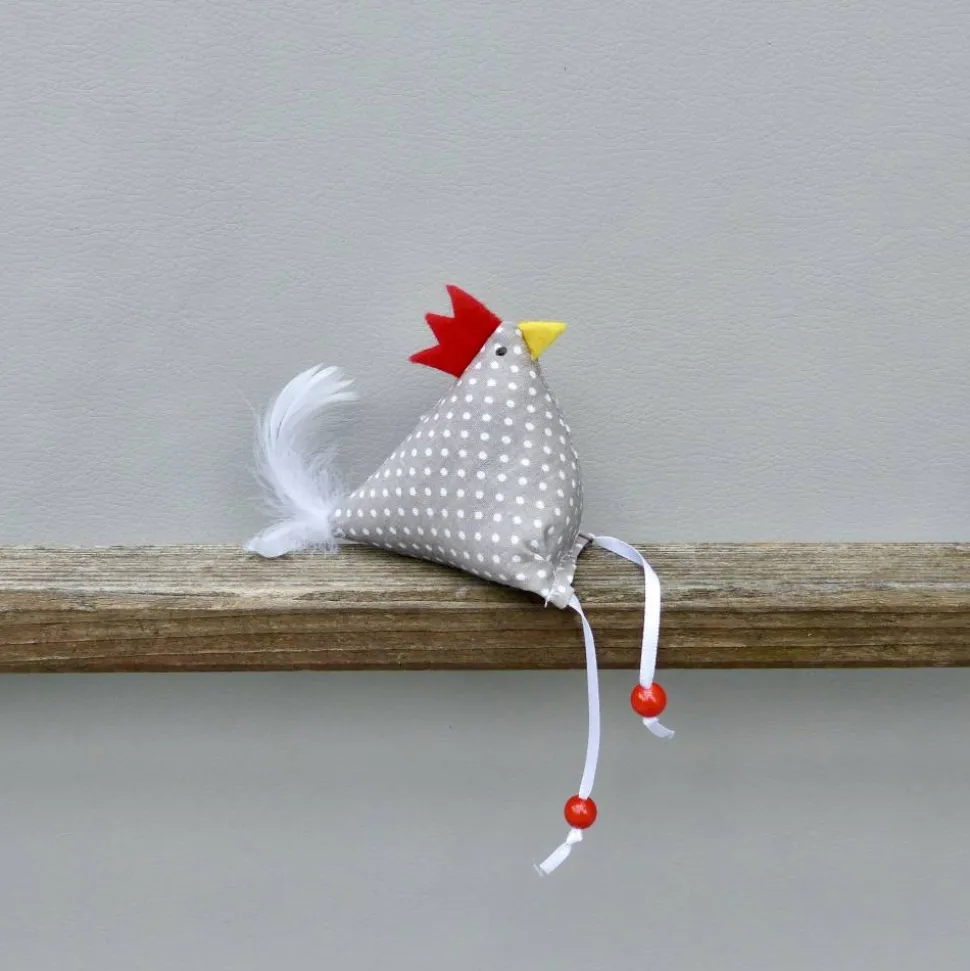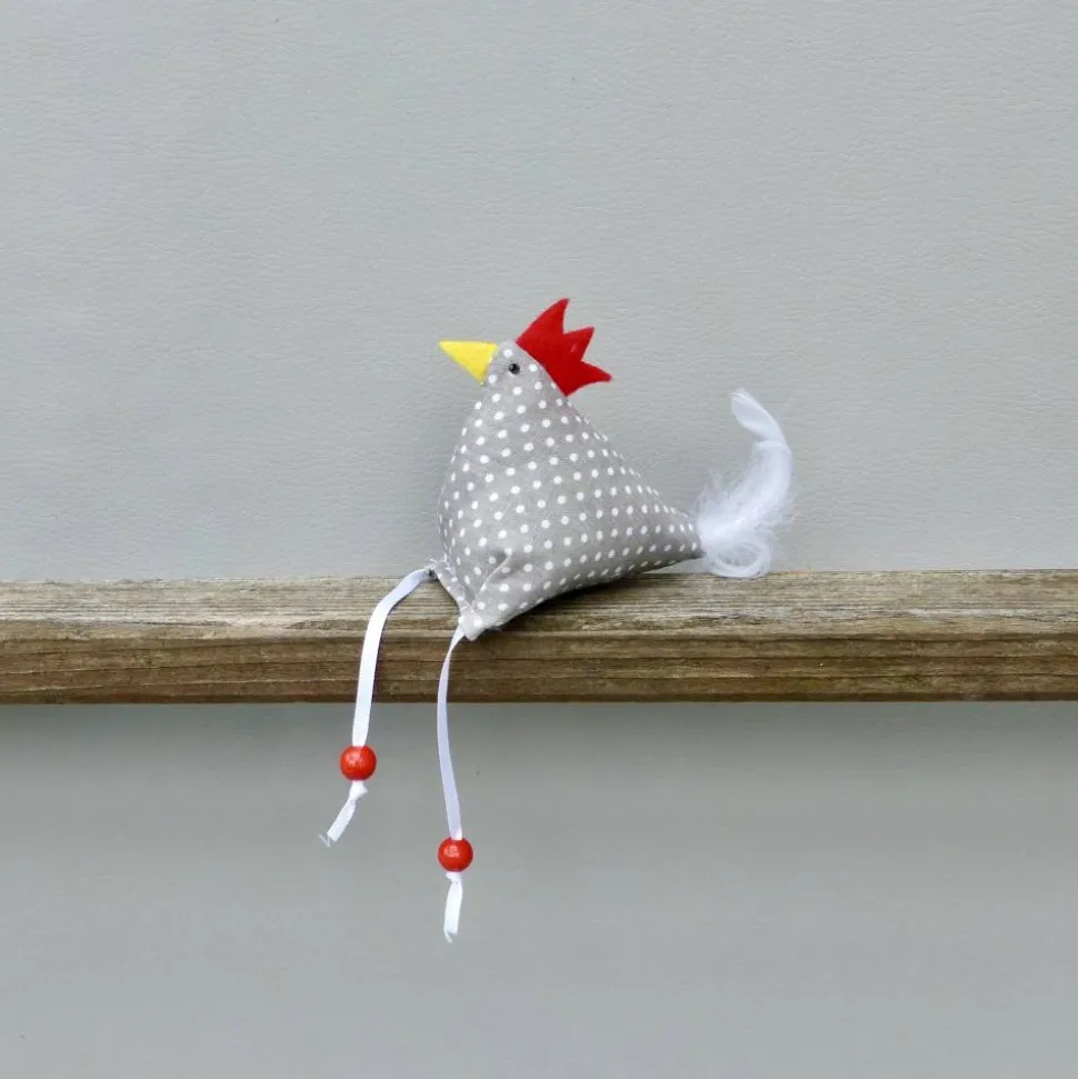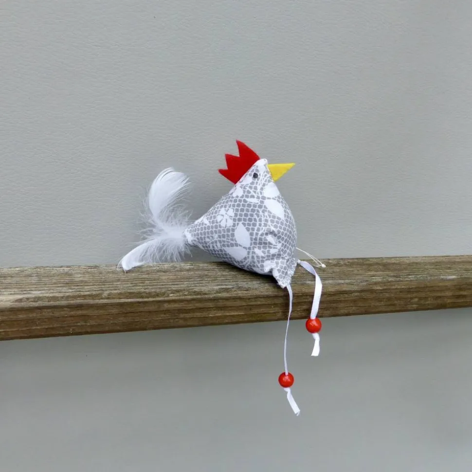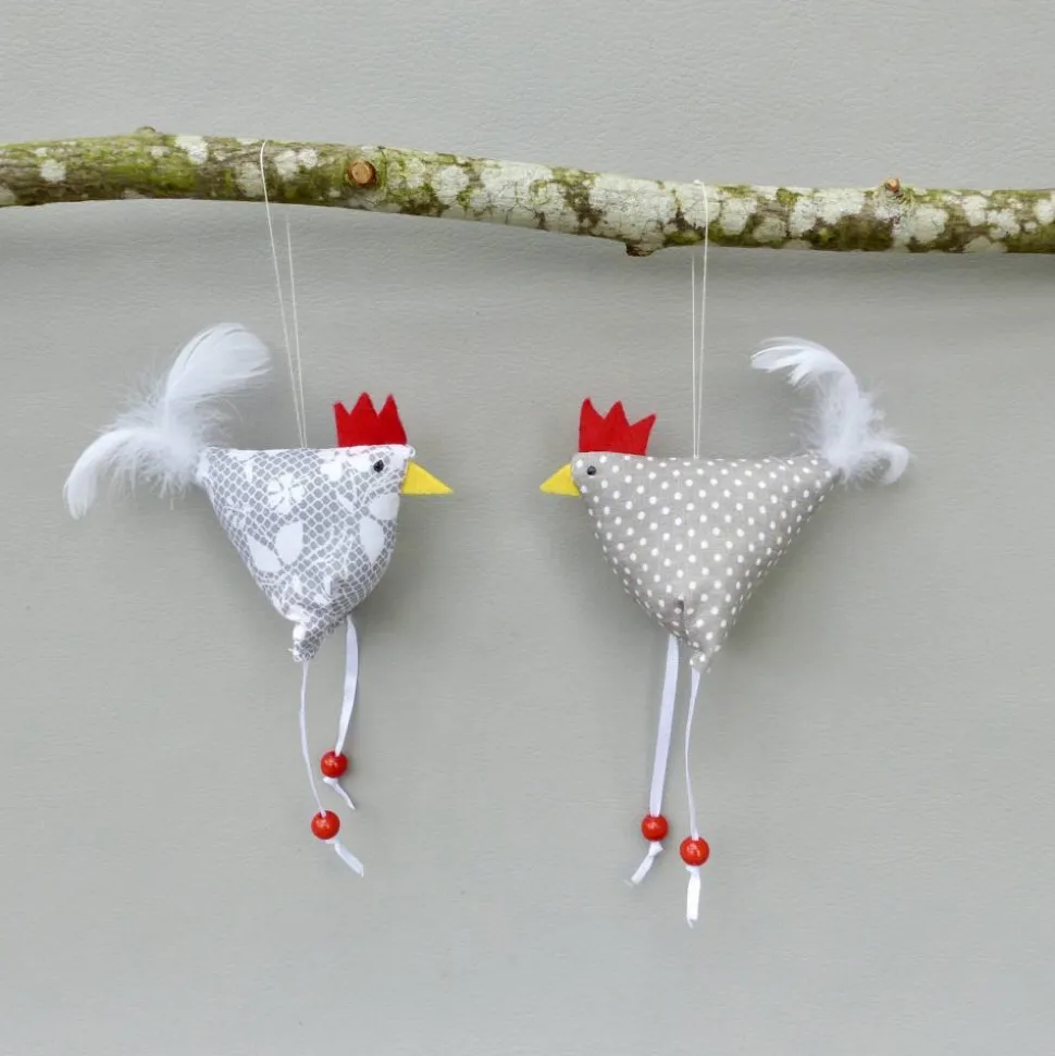Die Stoffhühner sind gesund (können sitzen und am angebrachten Faden sogar fliegen)