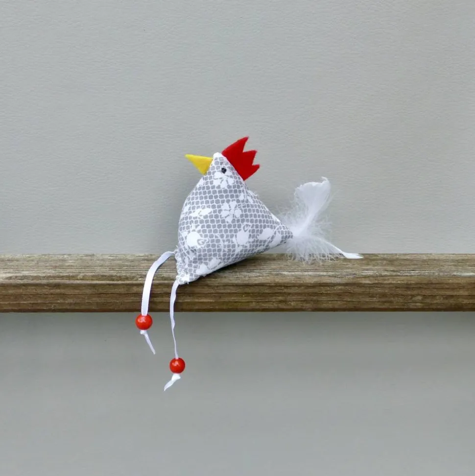 Diese handgefertigten Stoffhühner sind für die jahreszeitliche Dekoration zu Ostern gedacht.