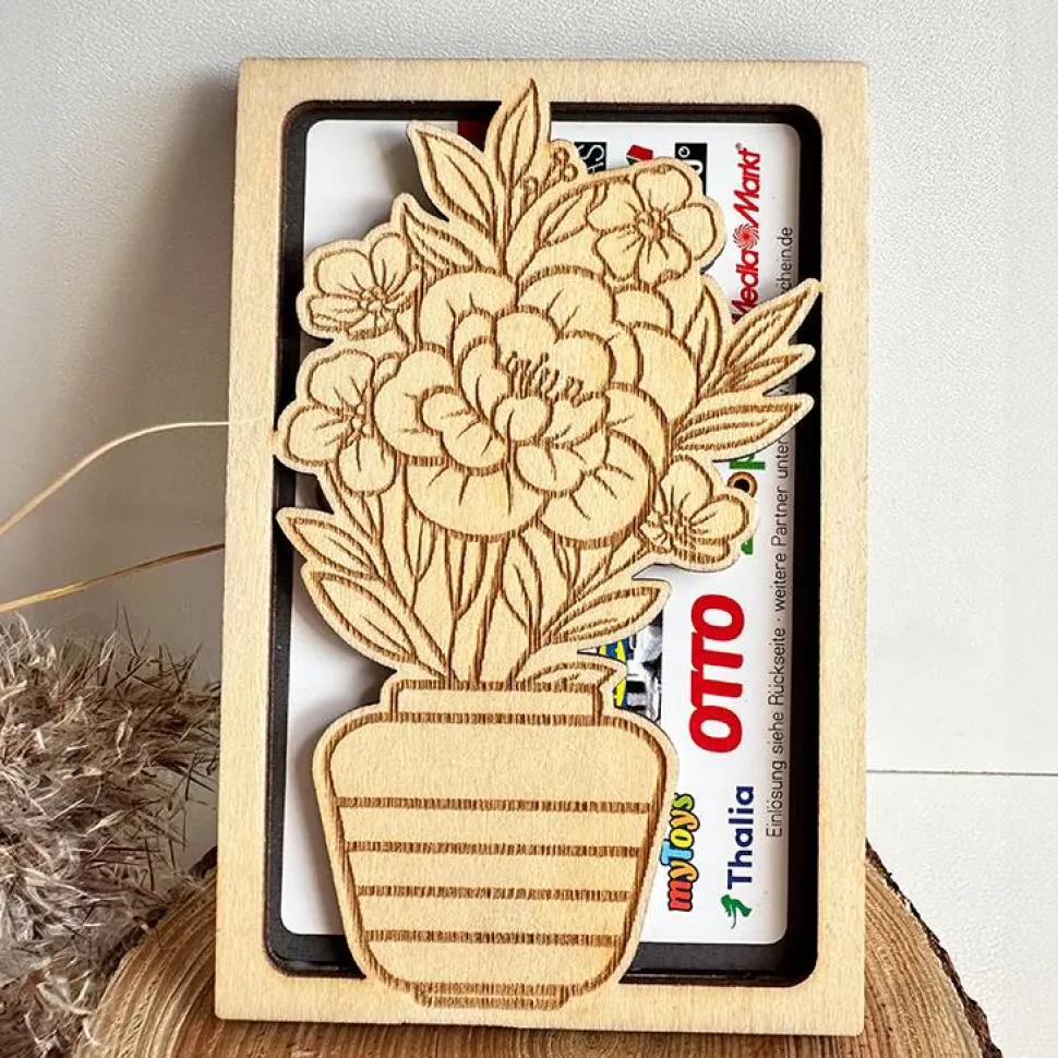 Du suchst eine schöne Möglichkeit eine Gutscheinkarte zu überreichen? Mit der stabilen Hülle aus Holz kommt deine Gutscheinkarte besonders hübsch verpackt an.