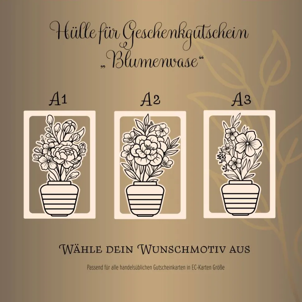 Passend für alle handelsüblichen Gutscheinkarten 85 mm x 55 mm (Kreditkartengröße).