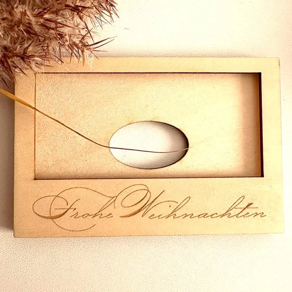 Mit der stabilen Hülle aus Holz kommt deine Gutscheinkarte besonders hübsch verpackt an.