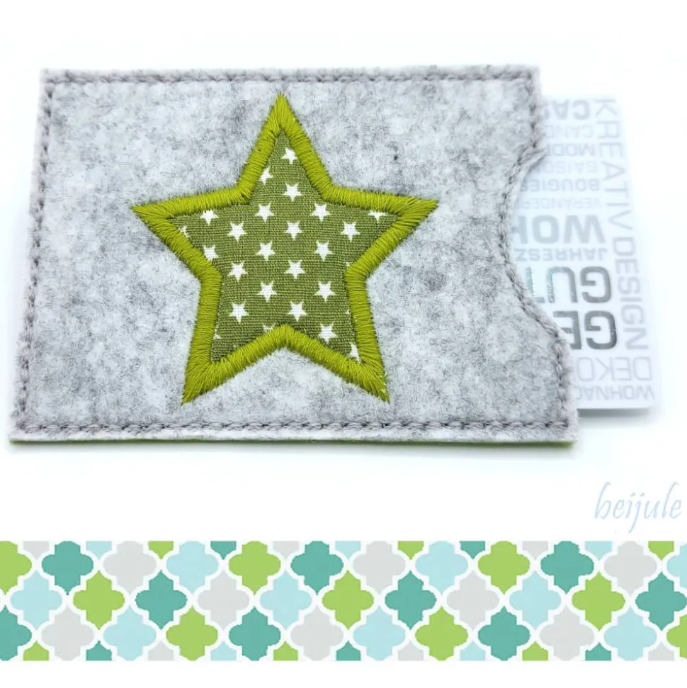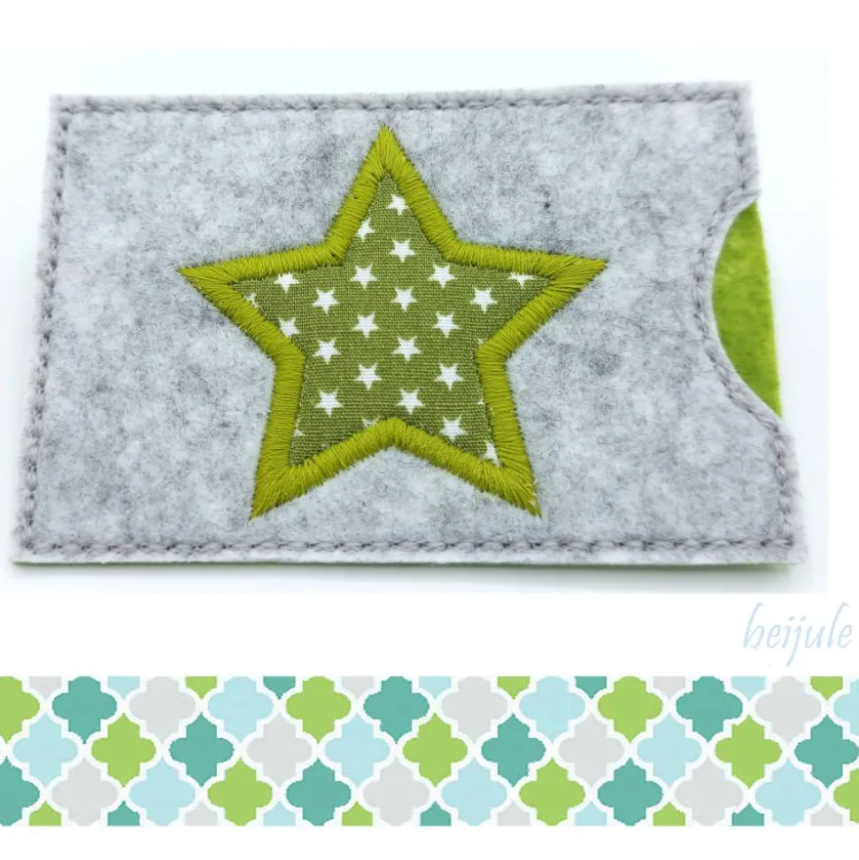 ♥Farbe Filz: vorne grau meliert, hinten grün, Stickerei: grün, weiss♥