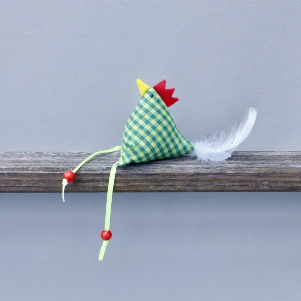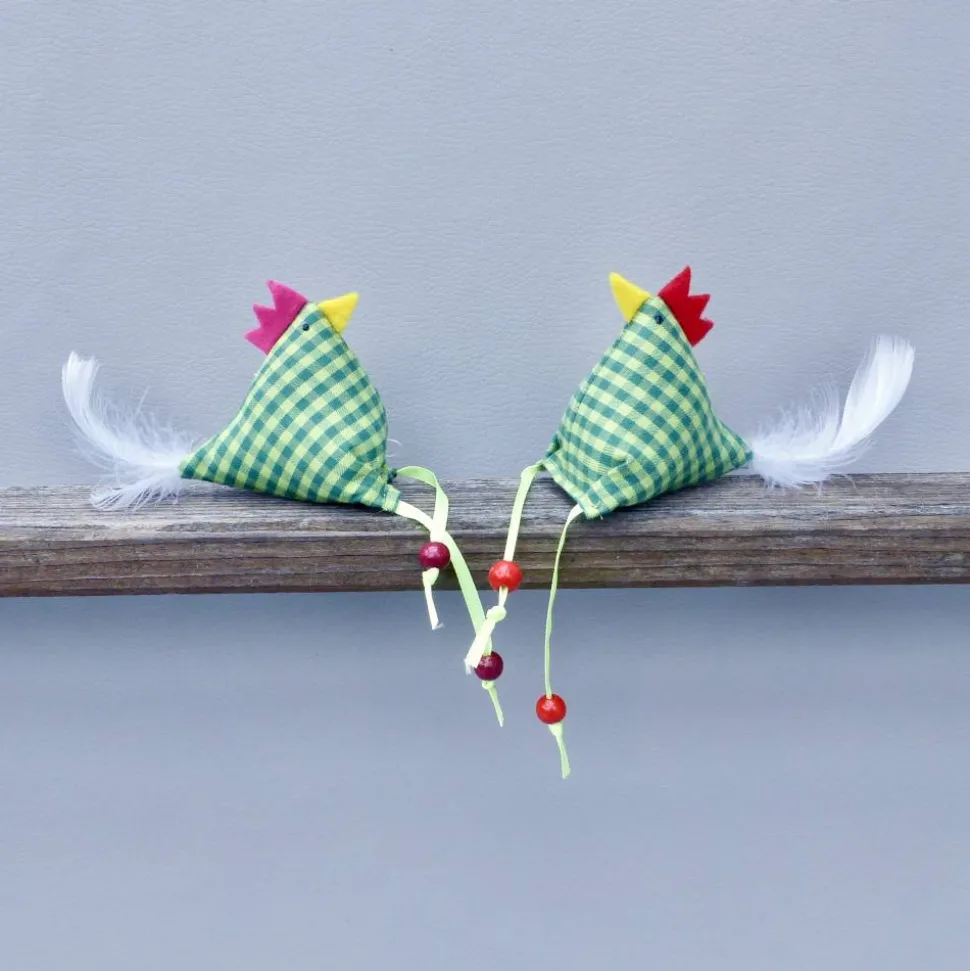 Die Stoffhühner sind gesund (können sitzen und am angebrachten Faden sogar fliegen)