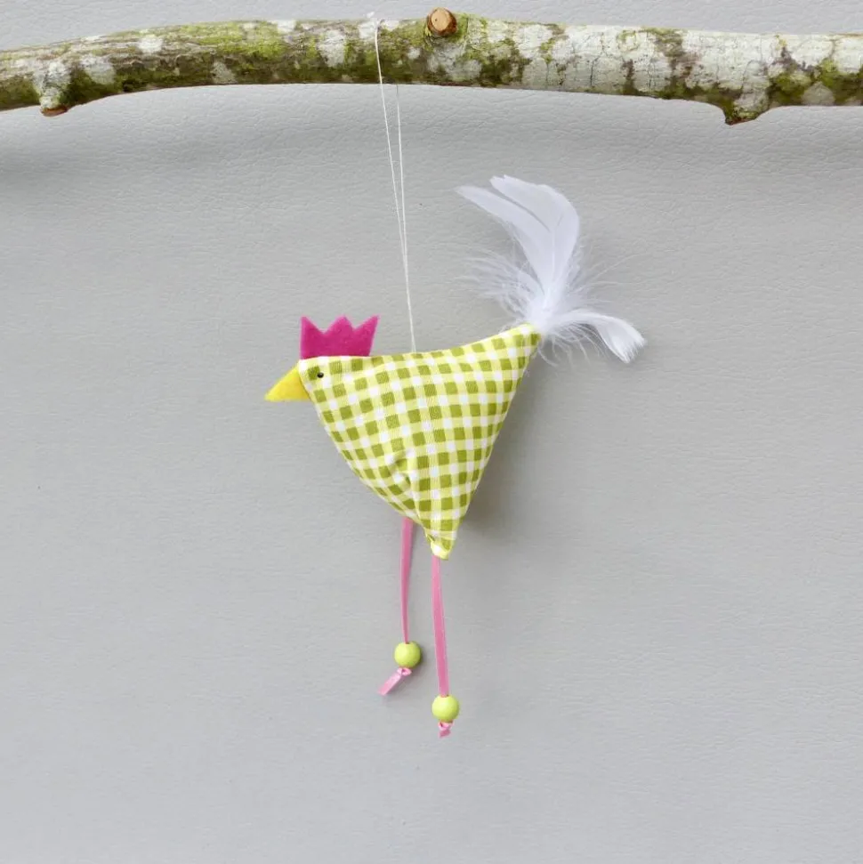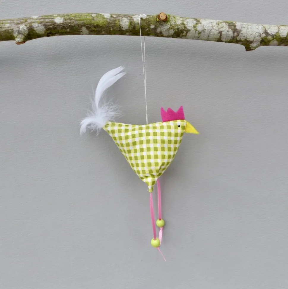 Die Stoffhühner sind gesund (können sitzen und am angebrachten Faden sogar fliegen)