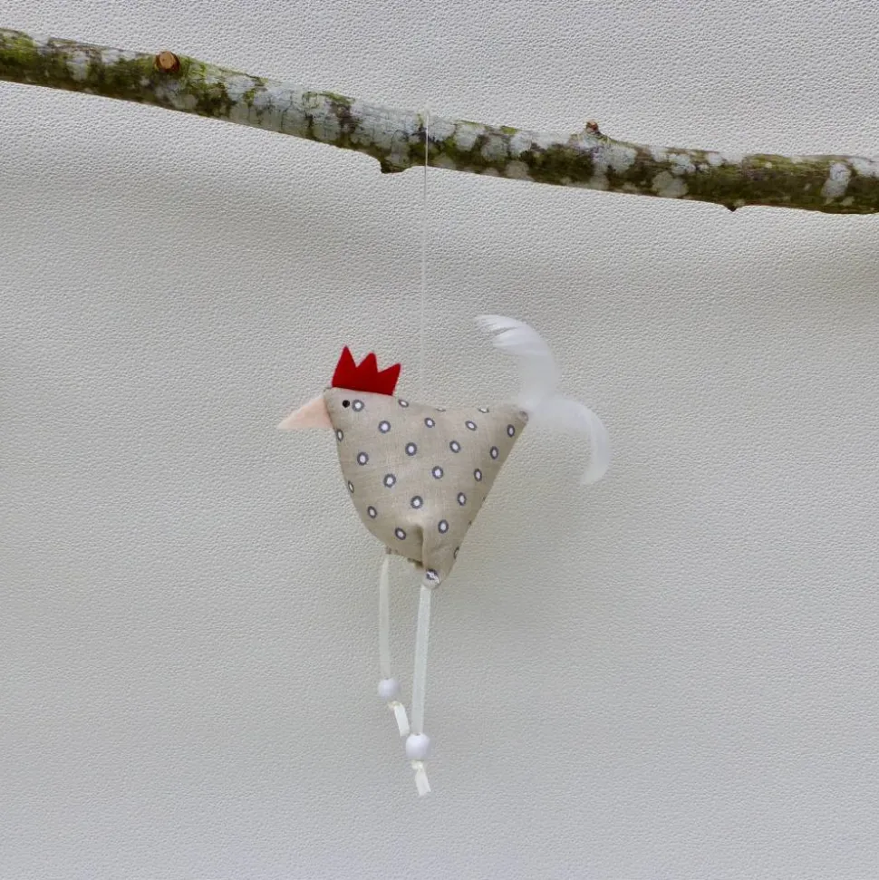 Die Stoffhühner sind gesund (können sitzen und am angebrachten Faden sogar fliegen)