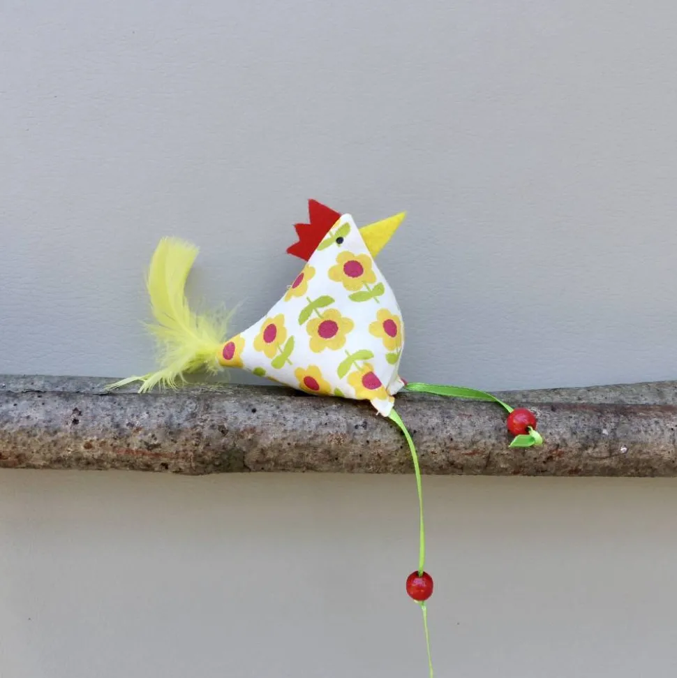 Diese handgefertigten Stoffhühner sind für die jahreszeitliche Dekoration zu Ostern gedacht.
