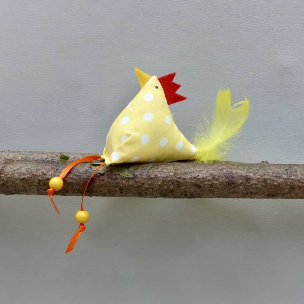 Die Stoffhühner sind gesund (können sitzen und am angebrachten Faden sogar fliegen)