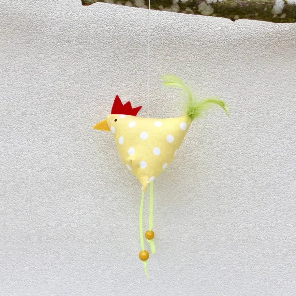 Diese handgefertigten Stoffhühner sind für die jahreszeitliche Dekoration zu Ostern gedacht.