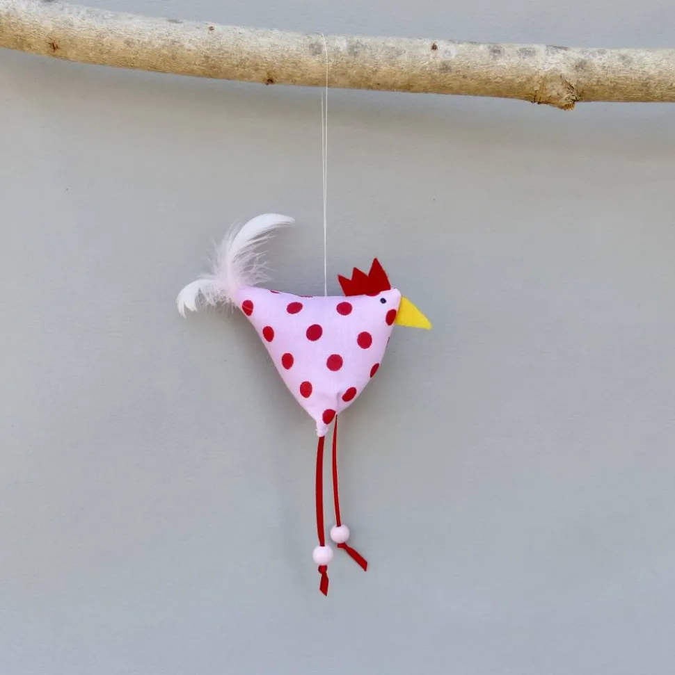 Die Stoffhühner sind gesund (können sitzen und am angebrachten Faden sogar fliegen)