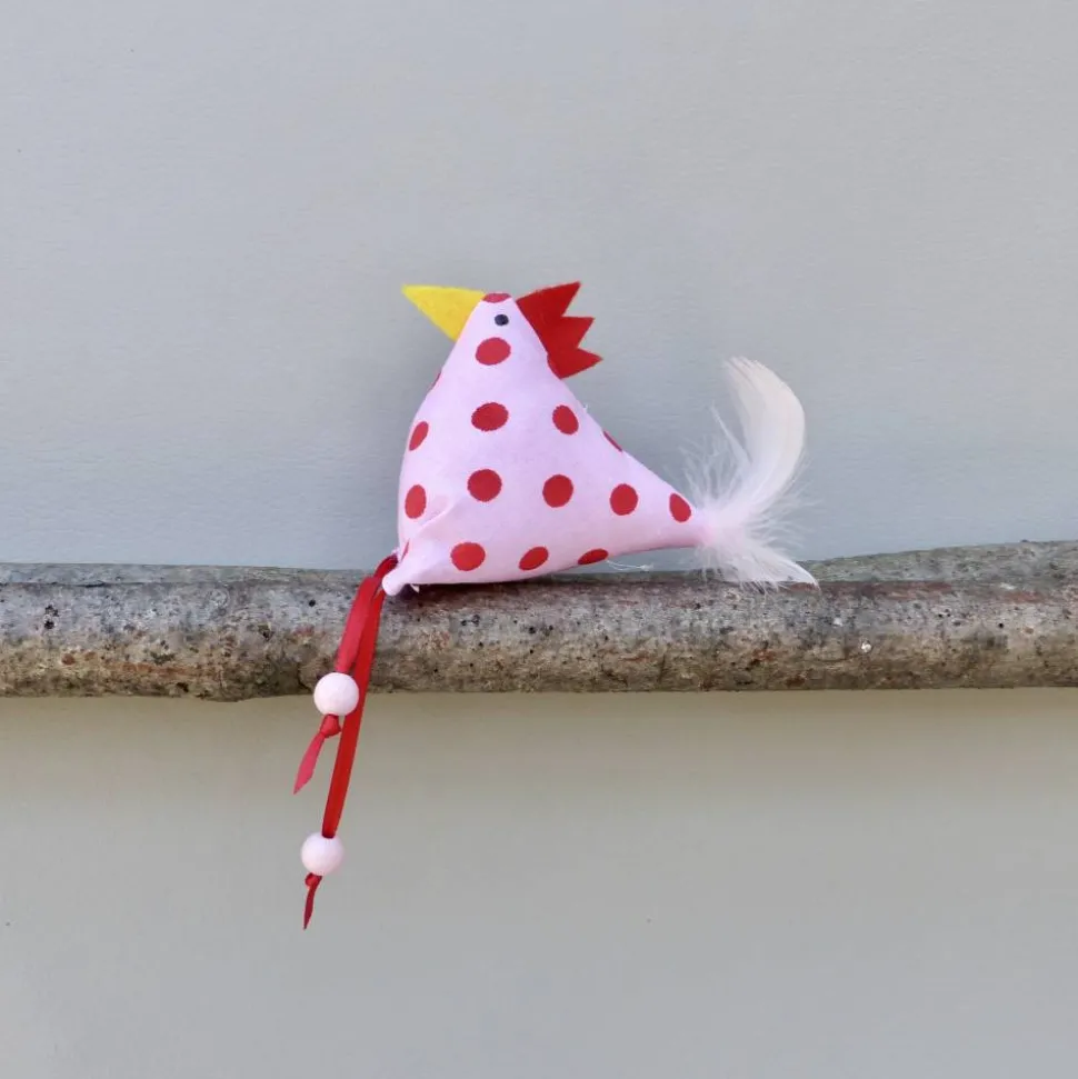 Diese handgefertigten Stoffhühner sind für die jahreszeitliche Dekoration zu Ostern gedacht.