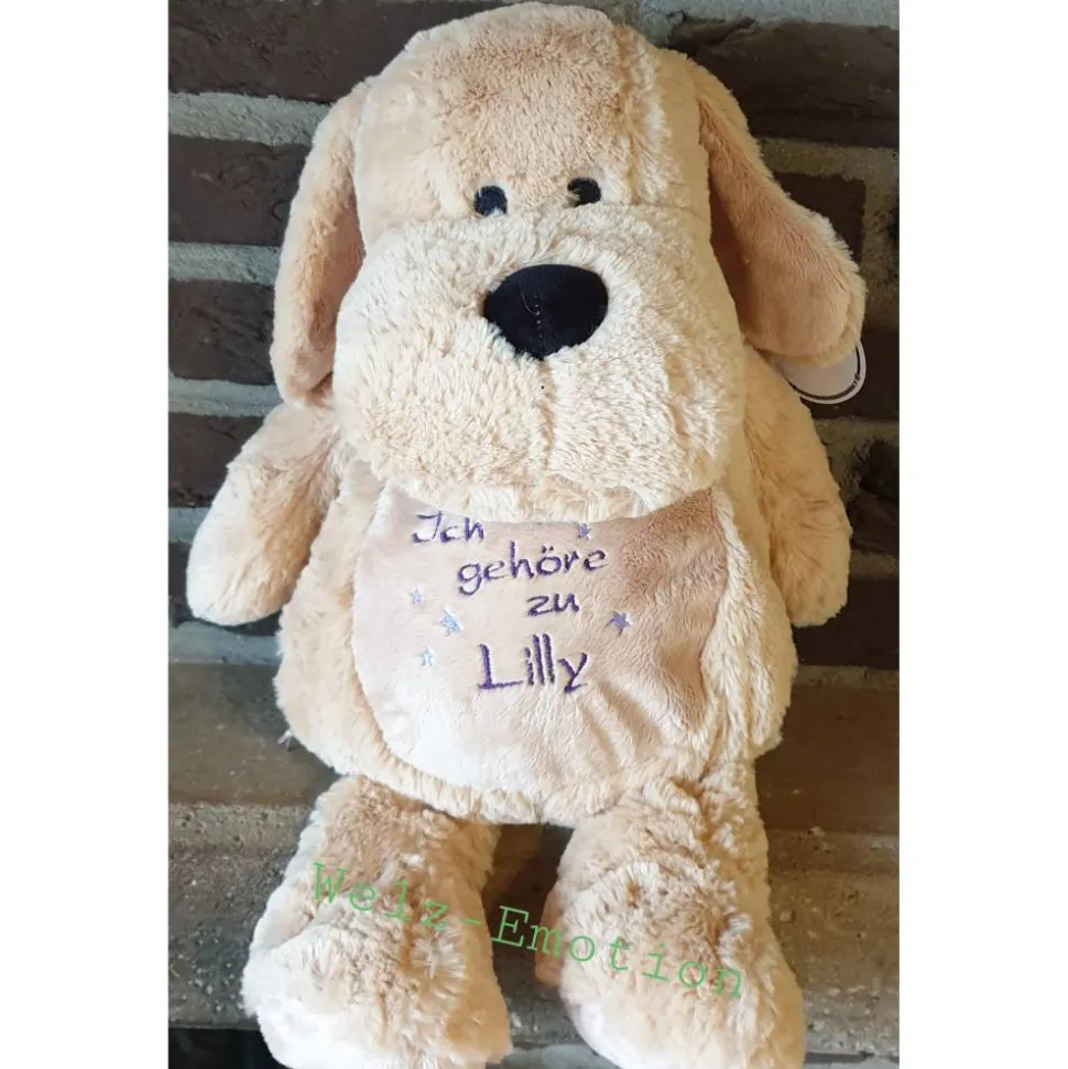 Hund – Kuscheltier individuell bestickt zur Geburt, Taufe, Geburtstag oder weiteren Anlässe