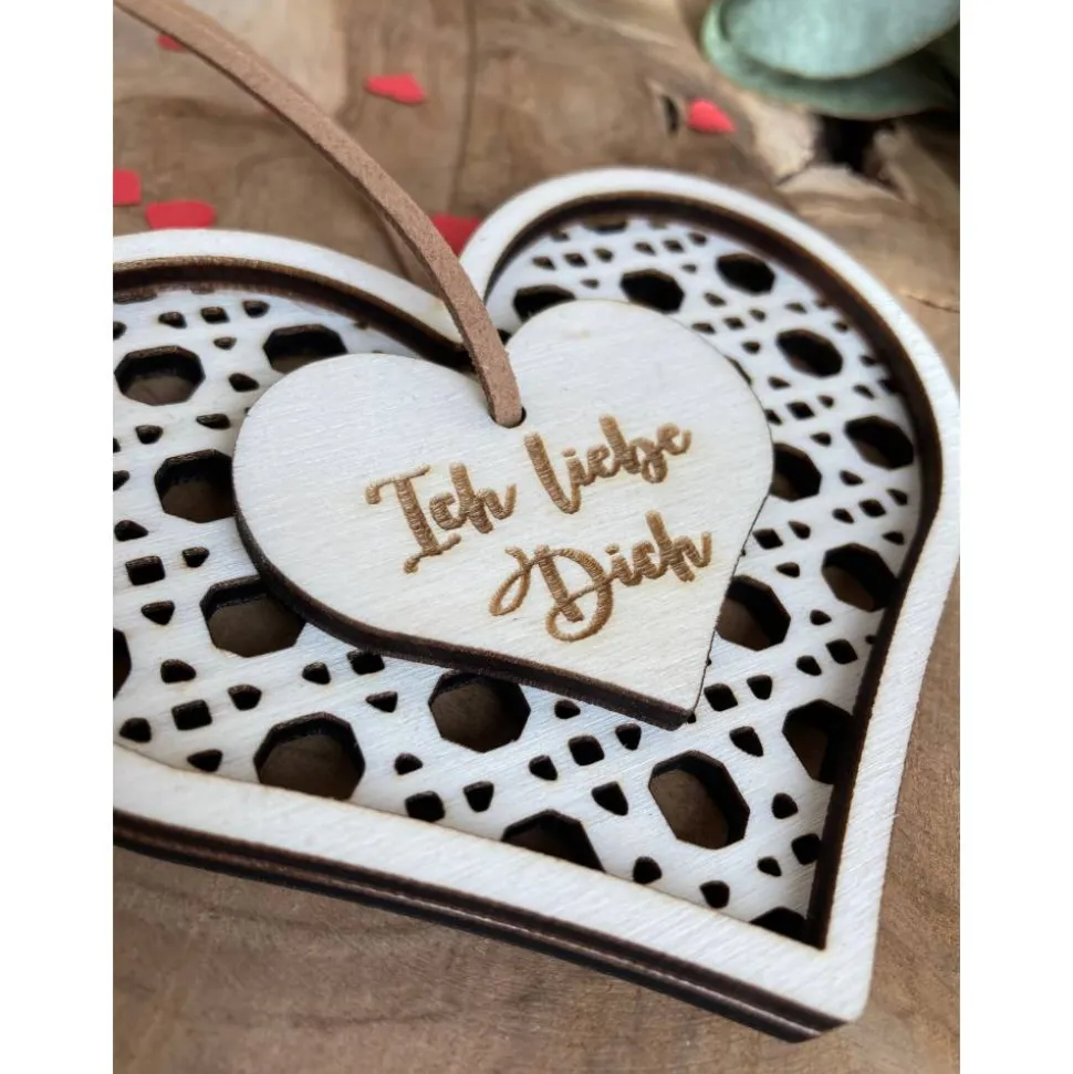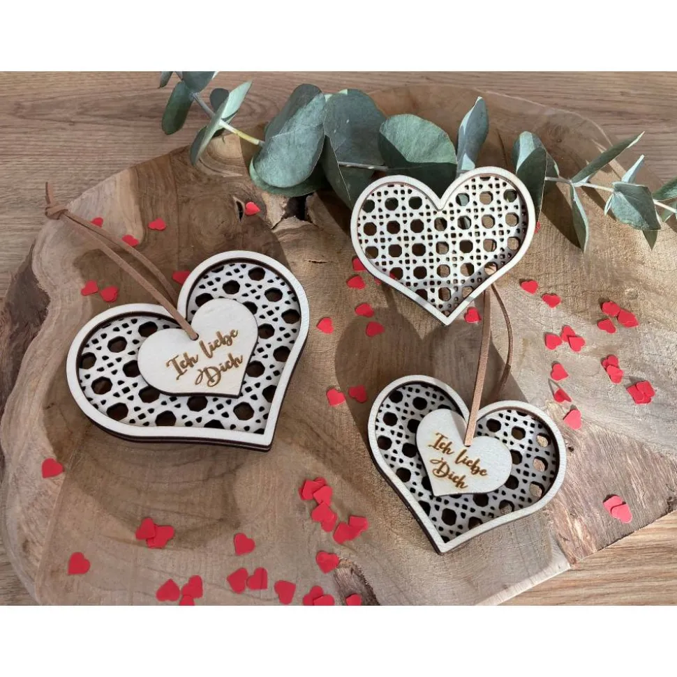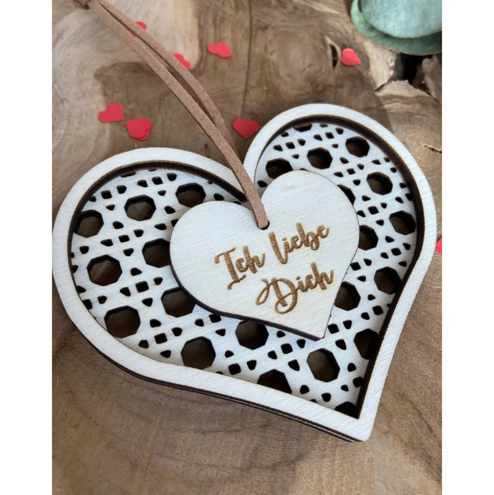 Ich liebe Dich Herzanhänger Rattanoptik