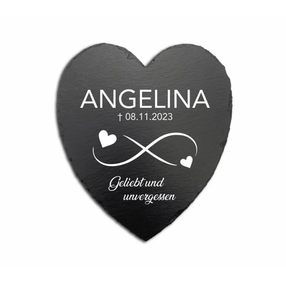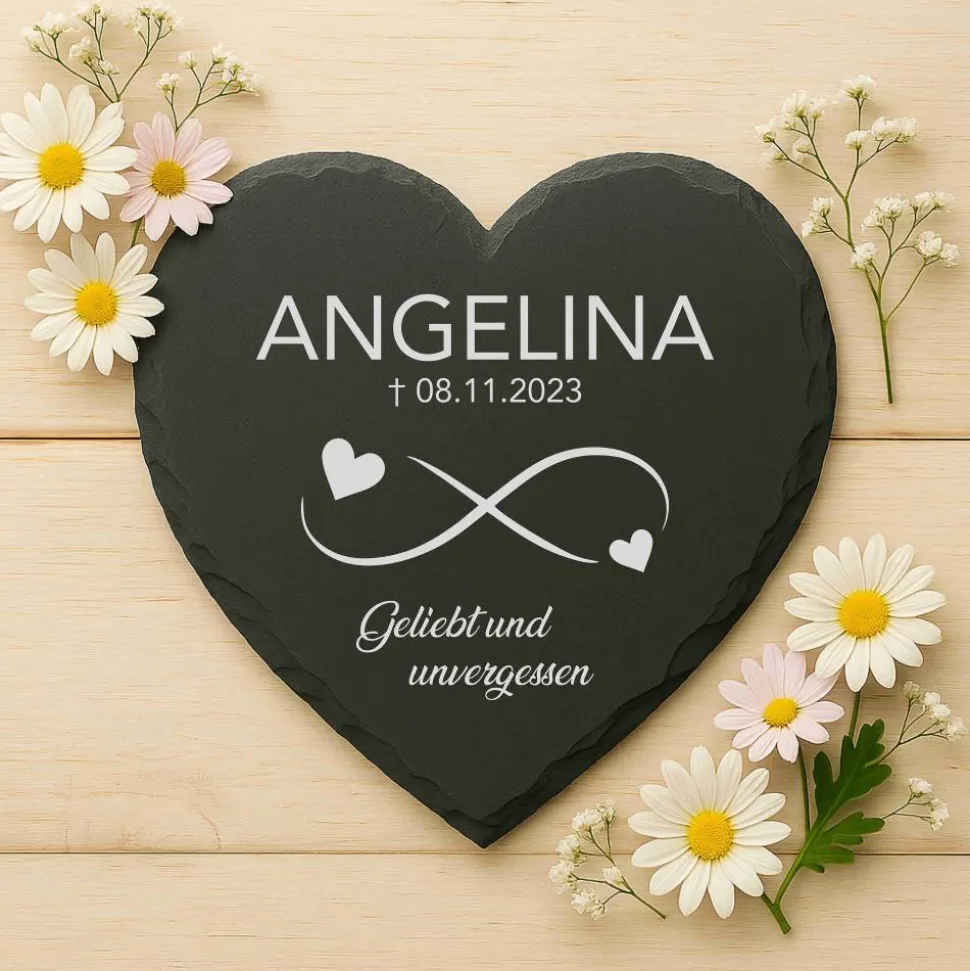 Individuell gravierte Schiefertafel in Herzform – wetterfester Gedenkstein & Grabstein handgemacht
