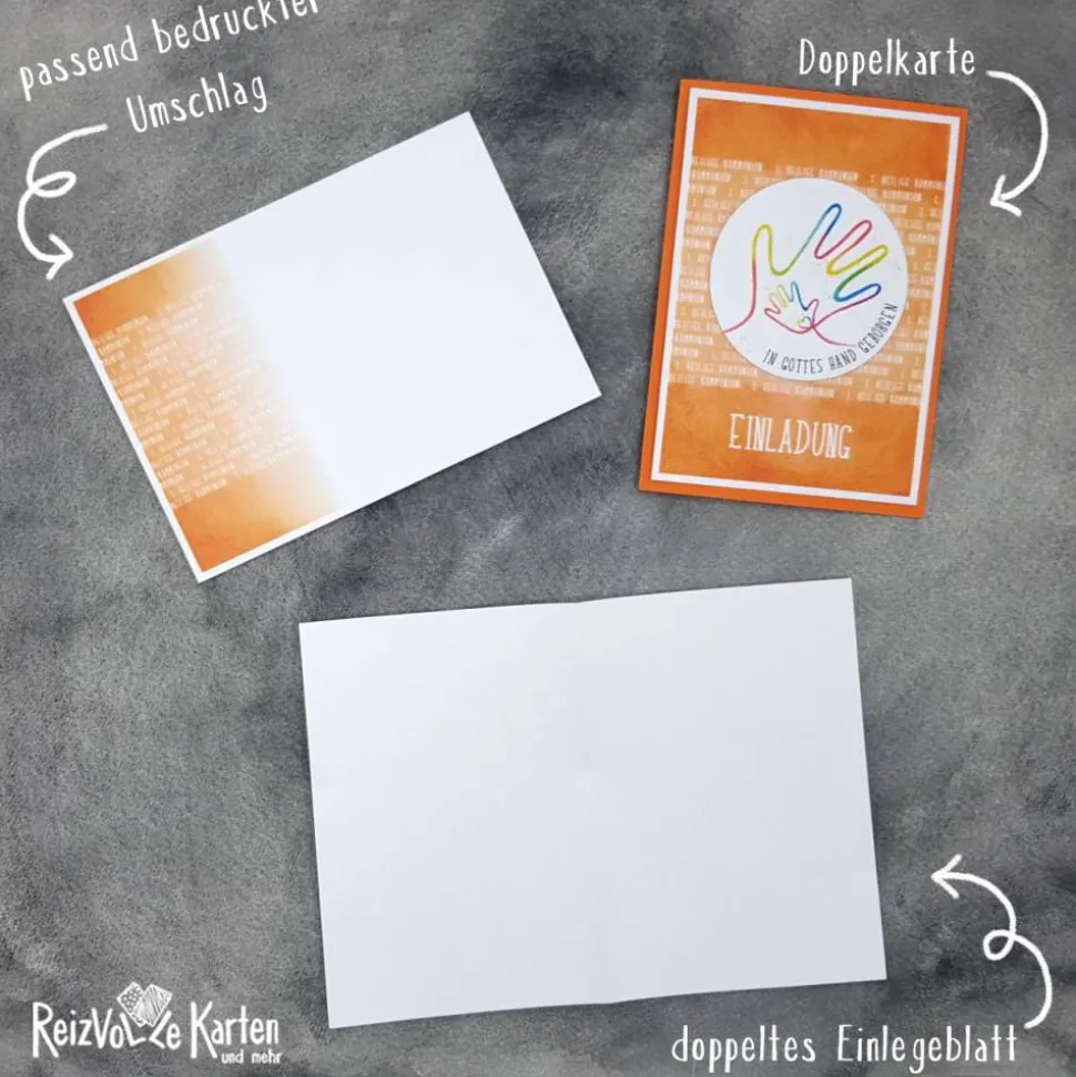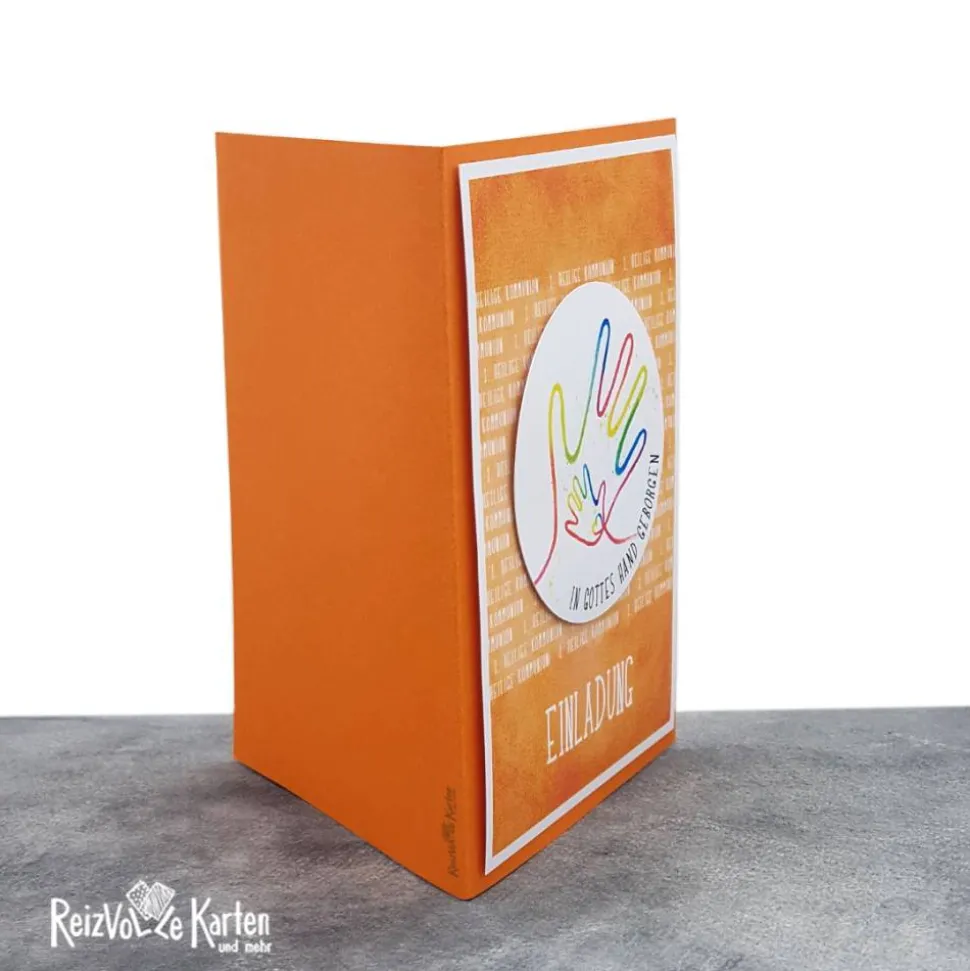Entdecke die besondere Einladungskarte zur Kommunion zum Thema „In Gottes Hand geborgen“. Diese Doppelkarte wird ganz individuell für dich gefertigt und hebt sich durch ihre hochwertige Verarbeitung und liebevolle Gestaltung hervor.