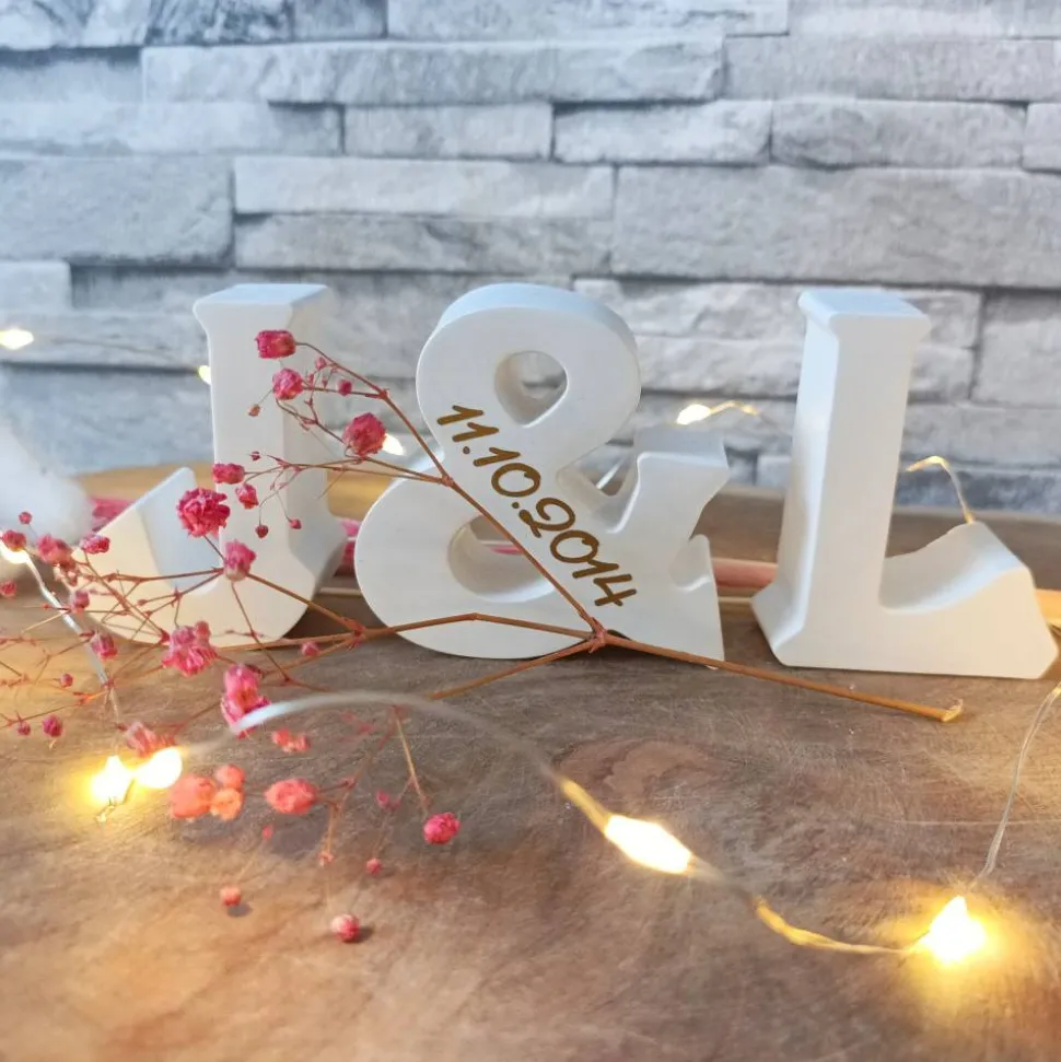 Suchst du nach einem besonderen Geschenk für deinen Schatz oder für ein befreundetes Paar, das bald heiratet? Meine Raysin Initialen sind die perfekte Wahl. Du kannst sogar das “&”-Zeichen mit dem Datum deiner Wahl bekleben lassen, um das Geschenk noch persönlicher zu gestalten.