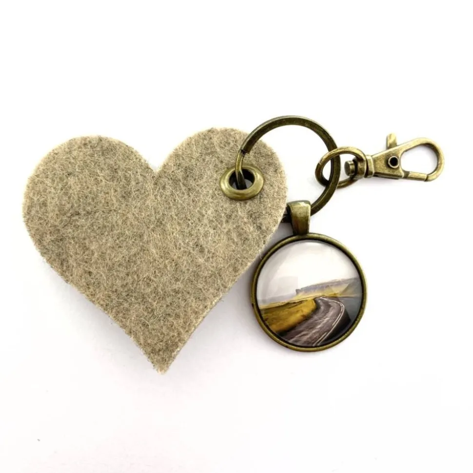→ Länge Schlüsselanhänger ohne Filz ca. 5 cm, Ø Bildmotiv ca. 25 mm, insgesamt ca.10 cm