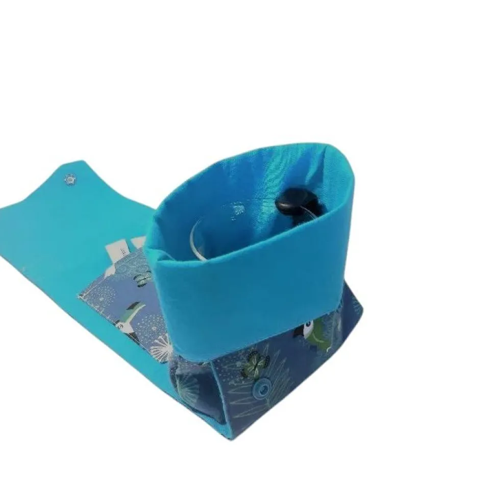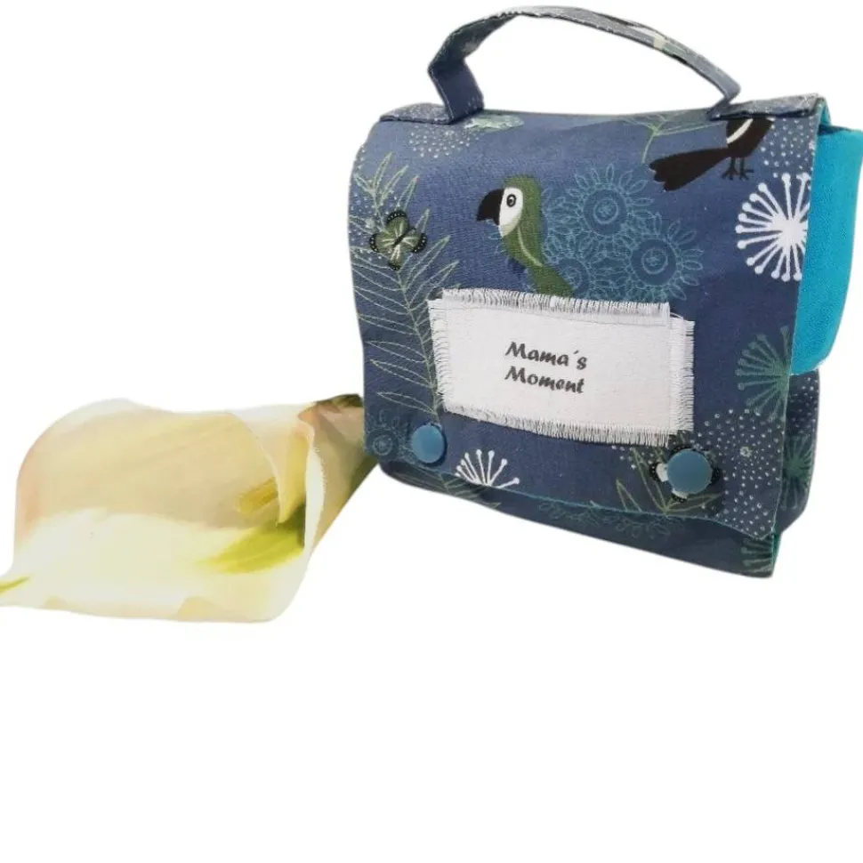 Diese Tasche bietet Stauraum für ein kleine Kaffee- oder Teetasse, ein kleines Fach für Zuckerbeutelchen oder Teebeutel. Tragegriff für ein schnelles mitnehmen, verschlossen per Kamsnaps. Ob für den Arbeitsplatz oder als nettes Muttertagesgeschenk mit dem Schriftzug „Mama´s Moment“. Nett befüllt mit Pralinen usw…, ist diese süße kleine Tasche auf jeden Fall ein „Hingucker“. Eine nette Idee auch als Mitbringsel gefüllt mit Gebäck oder Süßem.