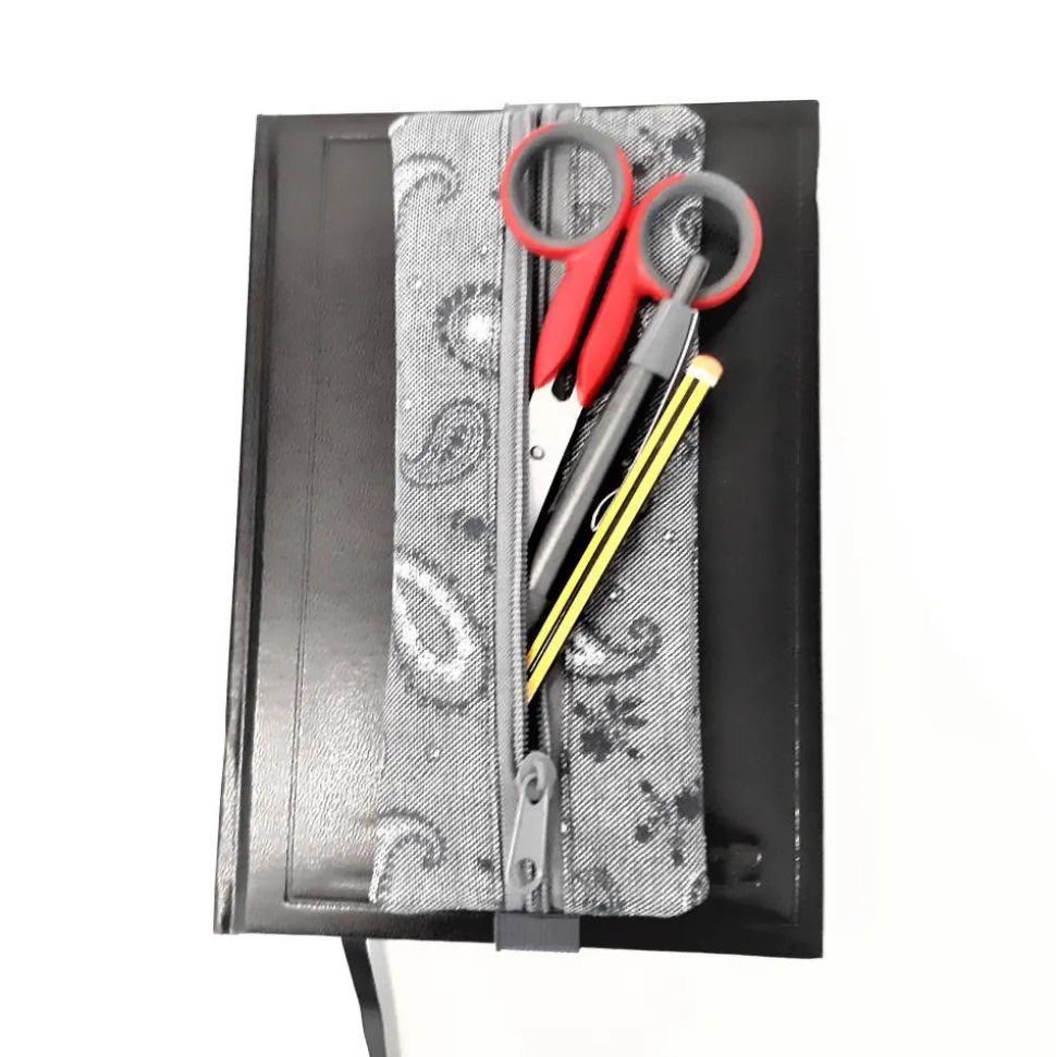 Oftmals gibt es für Notizbücher, Kalender, Rätselbücher, Tagebücher, Tablet und Kladden keine Gummilasche für den Kugelschreiber oder man benötigt einfach mehr Stifte und ein Lineal, Schere, Marker usw. Ein kleines Mäppchen am Notizbuch ist da ganz praktisch. Weiter kann das Mäppchen auch als Lesezeichen verwendet werden.