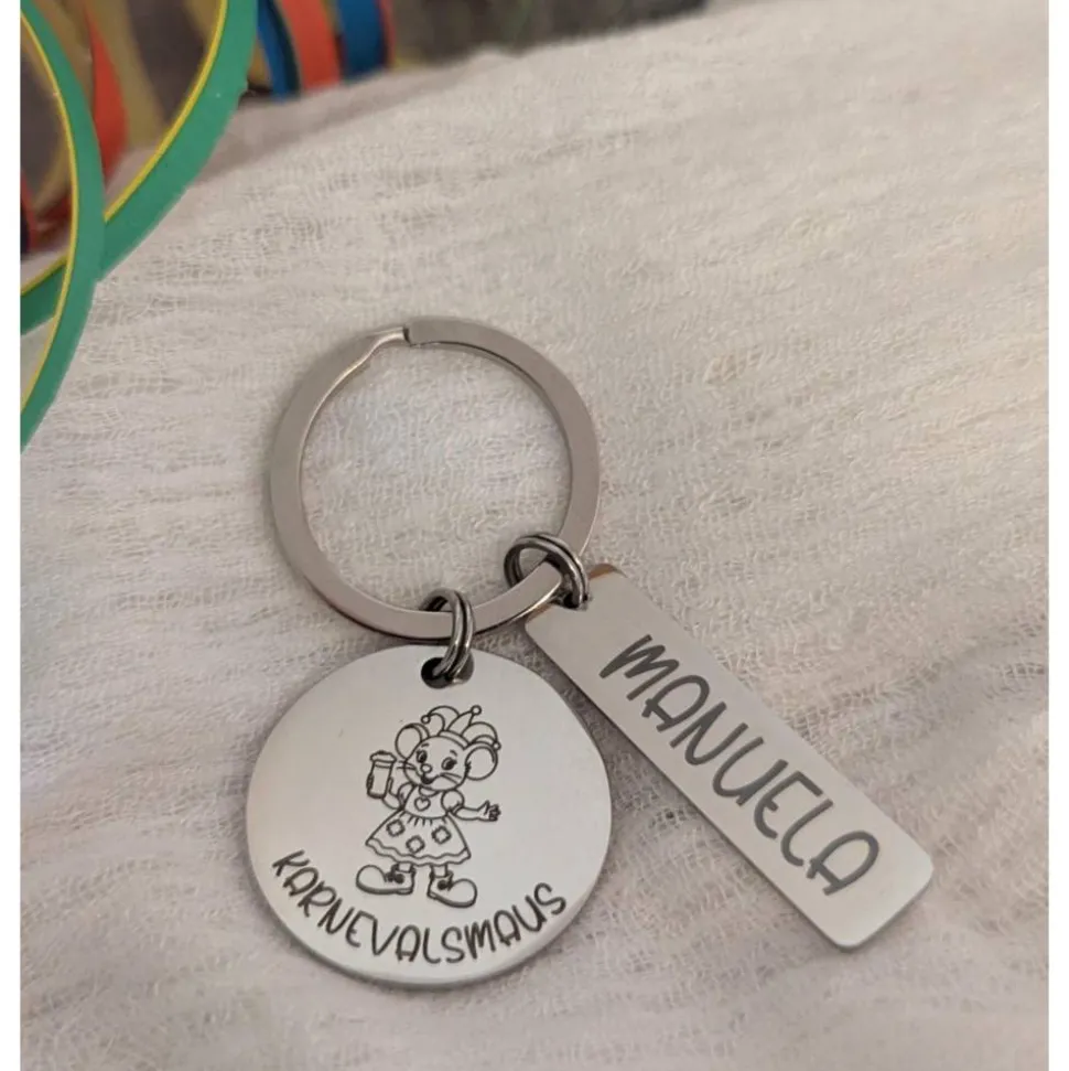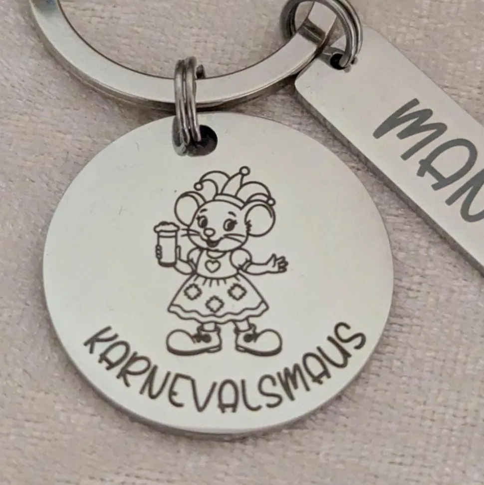 Karnevalsmaus Schlüsselanhänger– Personalisiert, rostfreier Edelstahl, tolles Accessoire für Karneval