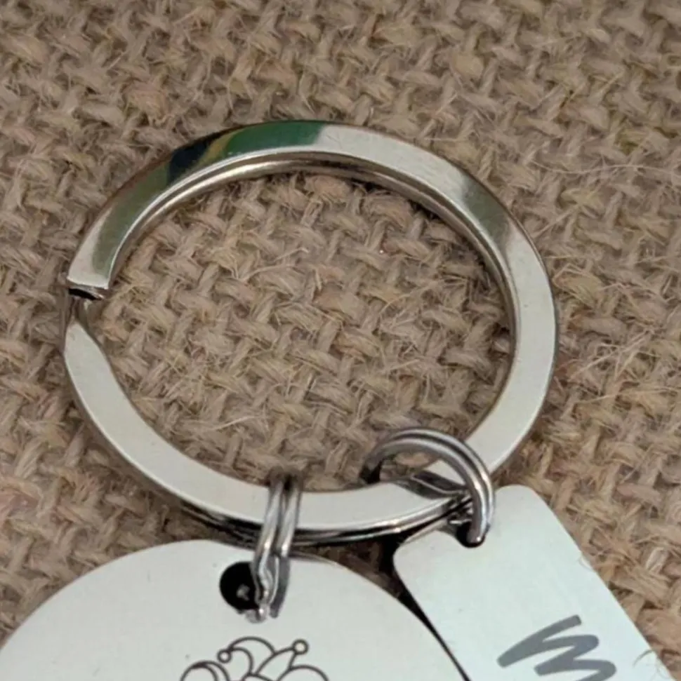 Karnevalsmaus Schlüsselanhänger – Unser personalisierter Karnevals-Schüsselanhänger mit der beliebten Karnevalsmaus ist das perfekte Accessoire für Karnevals-Fans. Passend zum Karnevalssong haben wir diesen Schlüsselanhänger mit der Genehmigung von der Band Druckluft entworfen und angefertigt. Der runde Anhänger hat einen Durchmesser von 30mm und wird mit der Karnevalsmaus graviert. Der rechteckige Anhänger misst 40X10mm und wird mit dem Wunschnamen graviert. Beide Anhänger sind 1mm dick und als Material verwenden wir immer rostfreien Edelstahl.