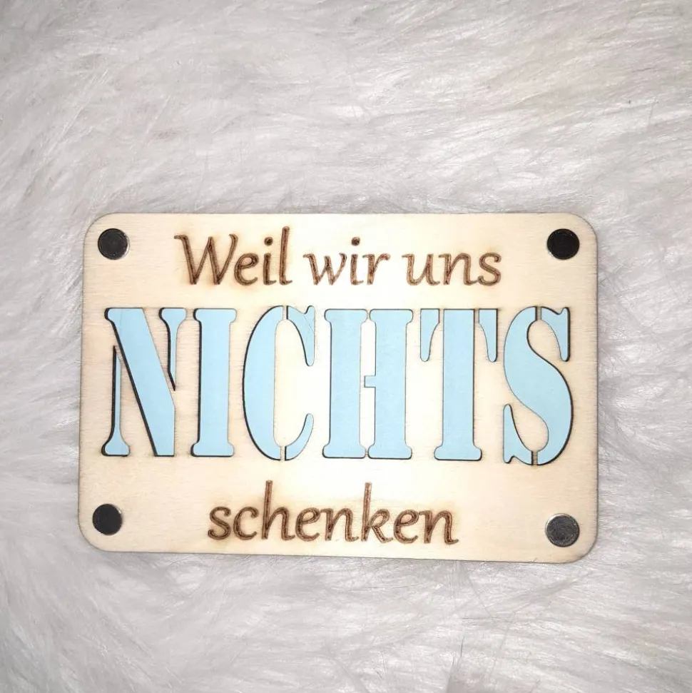 Die Schrauben können geöffnet und Geld oder ein Gutschein in die Karte gelegt werden.