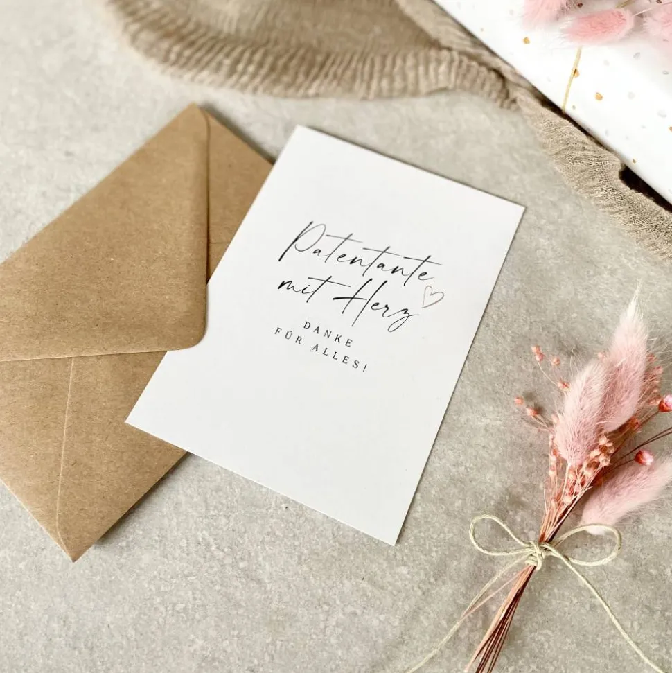 Diese Karte im Format Din A6 erhaltet ihr optional mit einem passenden Briefumschlag aus Kraftpapier.