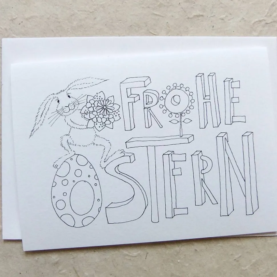 Motiv: FROHE OSTERN und Hase mit Blumenstrauß in schwarz-weiß zu,selbst colorieren