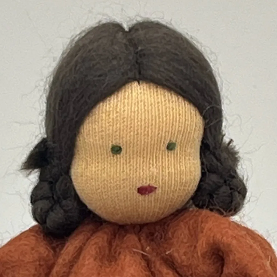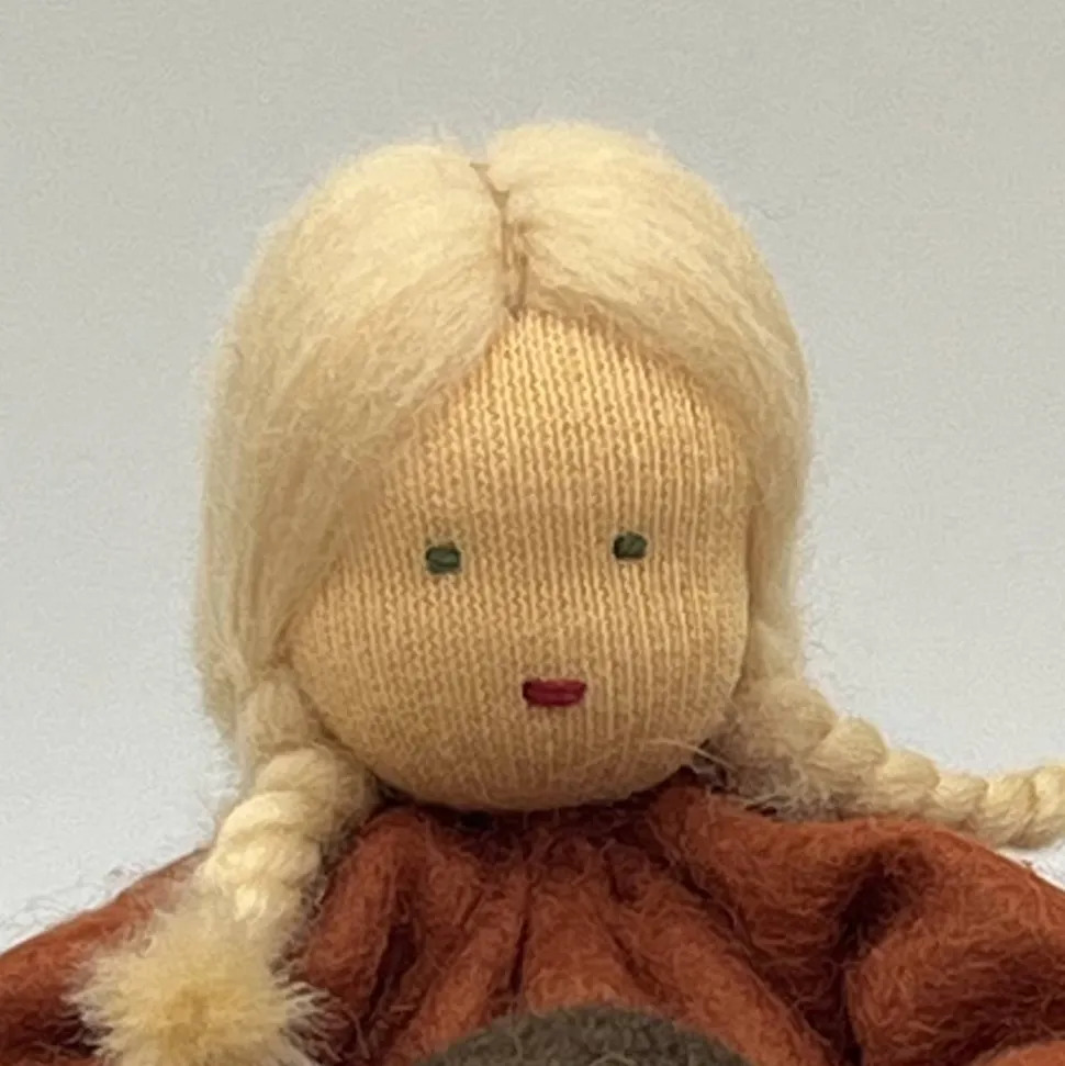 Das Püppchen ist unten geschlossen und für einen guten Stand unten mit feinem Dekokies und der Rest mit reiner, süddeutsche Merinowolle gefüllt.