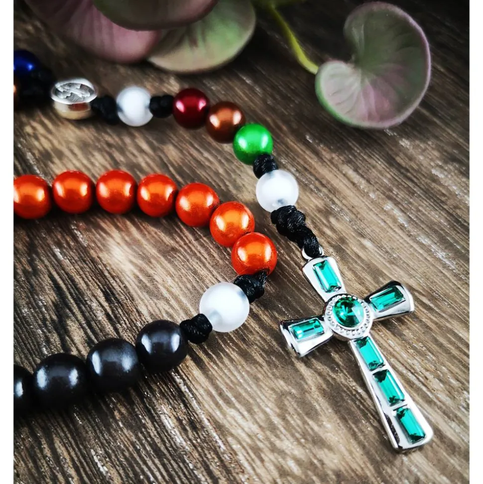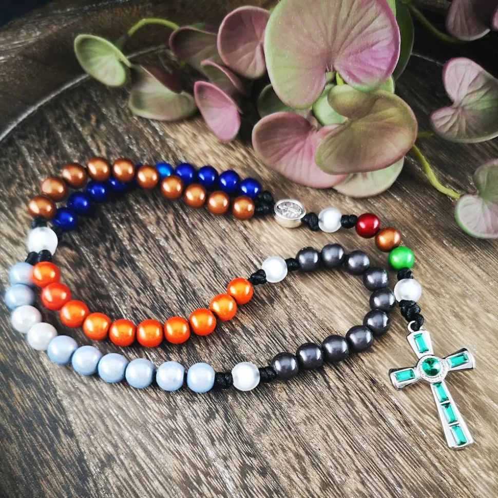 Der katholische Rosenkranz in bunter Farb- und Kreuzauswahl ist ein handgeknüpftes Stück, das nach Ihren Wünschen gefertigt werden kann.