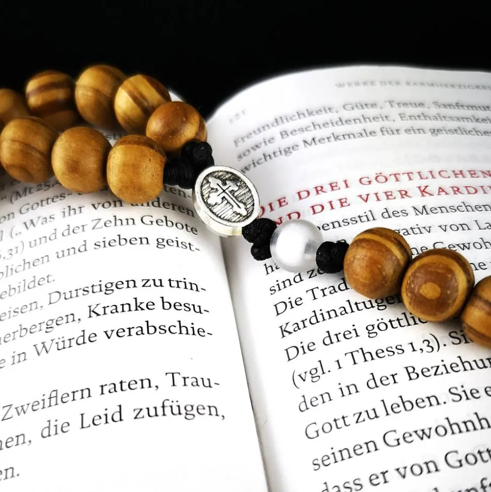 Bitte beachten Sie, dass dieser Rosenkranz nicht als Halskette getragen werden kann.