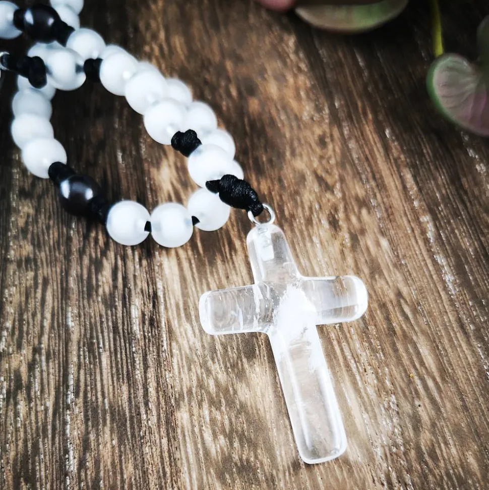 Gefertigt aus leichtem Acryl, eignet sich dieser Rosenkranz perfekt für unterwegs.