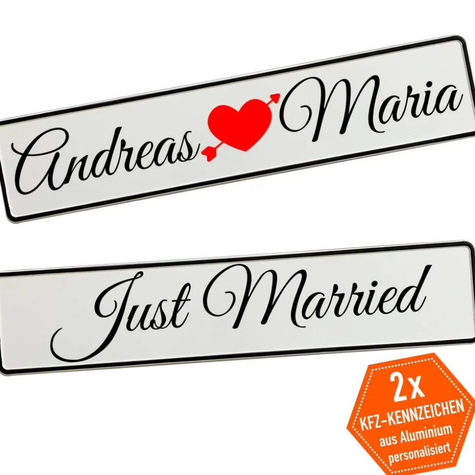 Stell dir vor, wie das Brautauto mit einem Schild glänzt, das eure Namen oder euren Wunschtext trägt. Damit wird dein Hochzeitsauto zur Bühne für den großen Auftritt.