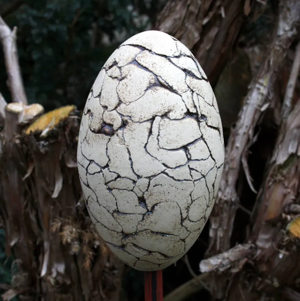 Von mir gearbeitet. Das Ei wurde freihand ausgeformt. So sieht jedes Keramikei durch die individuelle Rissbildung anders aus und ist ein besonderes Einzelstück !