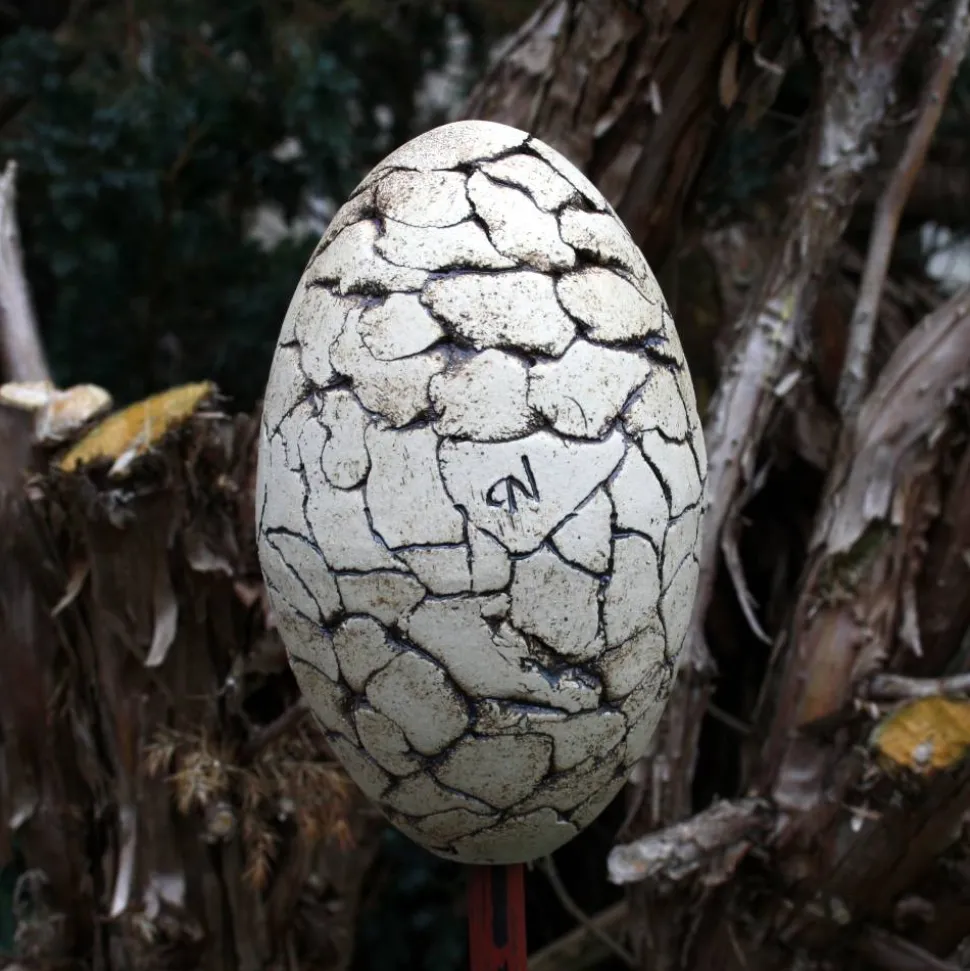 Von mir gearbeitet. Das Ei wurde freihand ausgeformt. So sieht jedes Keramikei durch die individuelle Rissbildung anders aus und ist ein besonderes Einzelstück !