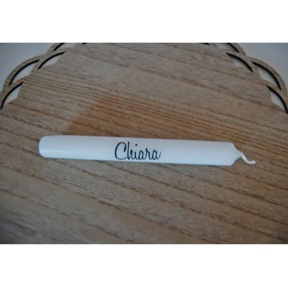 Der Schriftzug schrumpft beim herunterbrennen der Kerze geruchlos mit runter.