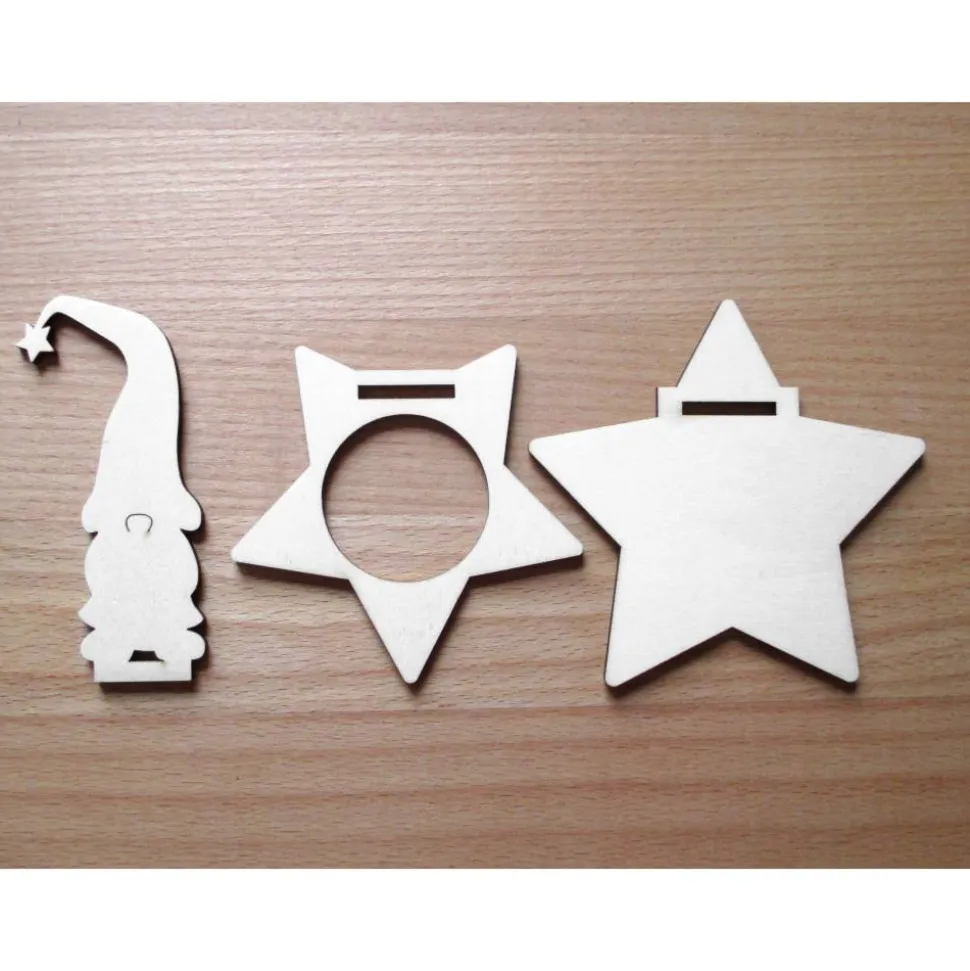 Kerzen-Wichtel Kuno mit Teelicht-Stern, Steckset aus Holz
